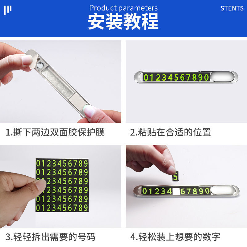 Временная парковочная табличка Скрытая табличка с номером мобильного телефона Металлический движущийся номерной знак Светящаяся парковочная карта