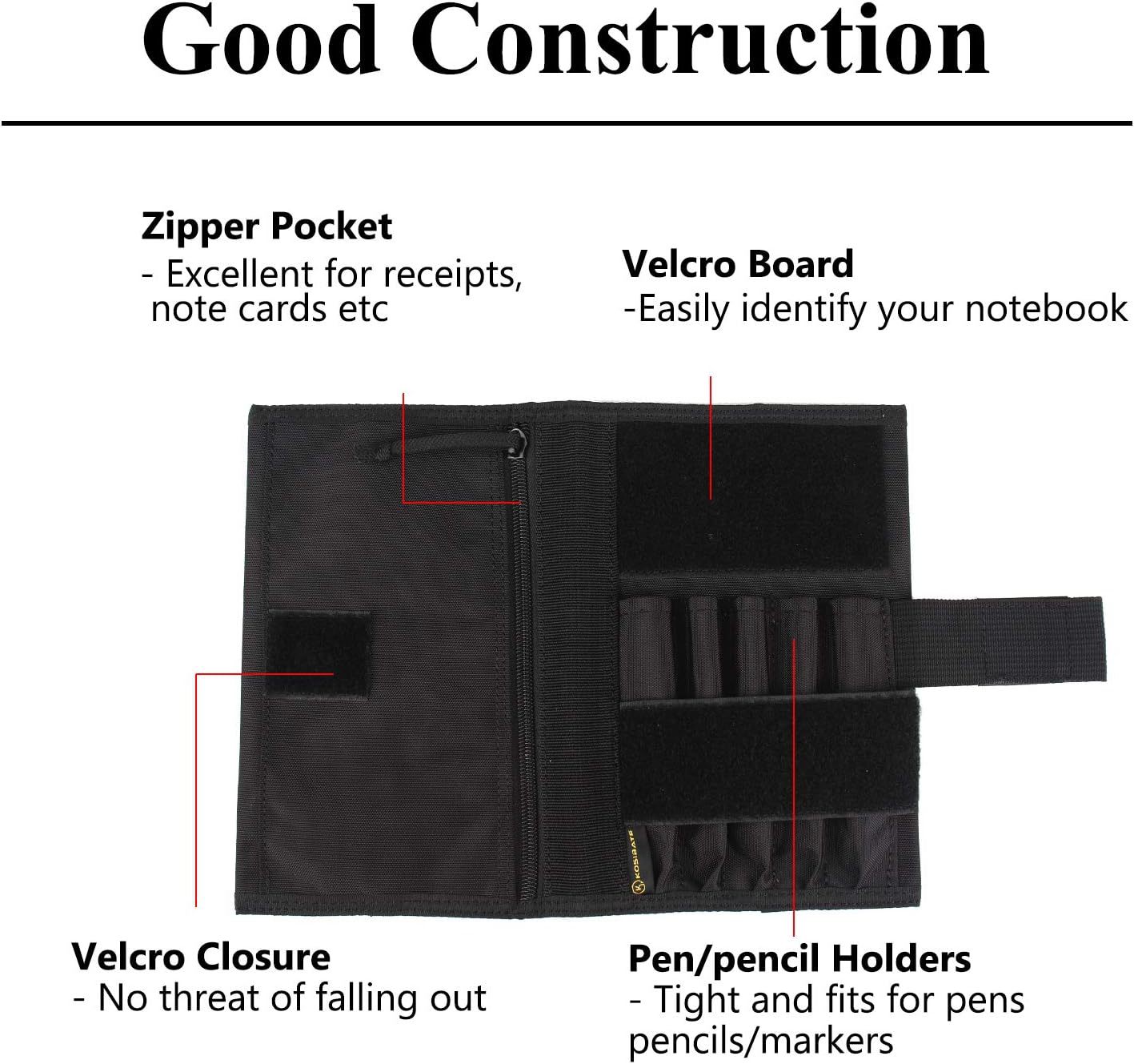 Tactical Notebook Cover, Military Army Leader Book Cover, 8x5 Inch (Black)