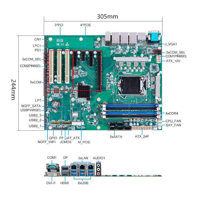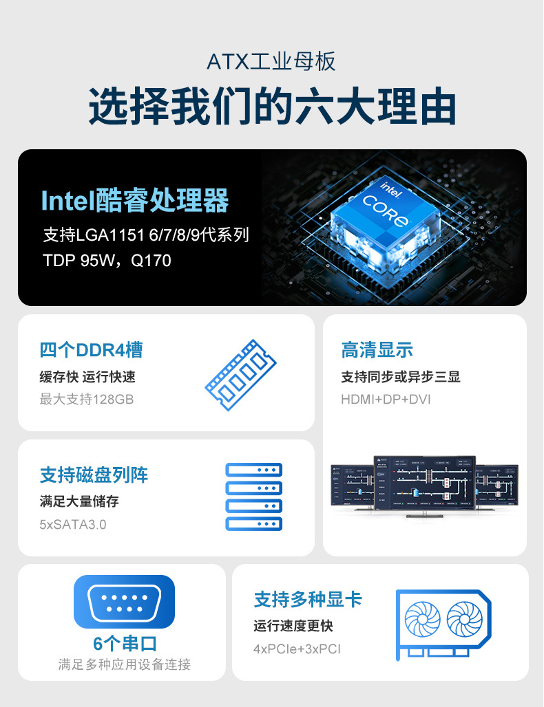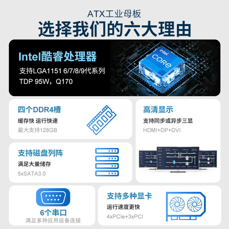 Материнская плата Paiqin 6/7/8/9 поколения ATX для промышленного управления, Q170, с несколькими сетевыми портами, для систем визуального контроля и лазерных систем, x86