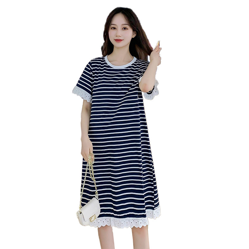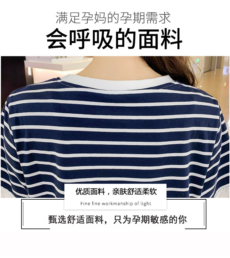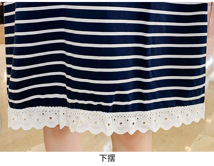 Беременные Женщины Лето 2023 новый длинный полосатый шить кружева лактации платье