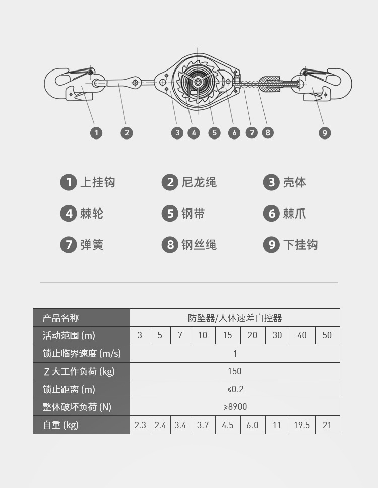 Строительный замедлитель Промышленный дифференциал скорости Портативный высотный работающий устройство для предотвращения падения самофиксирующего устройства