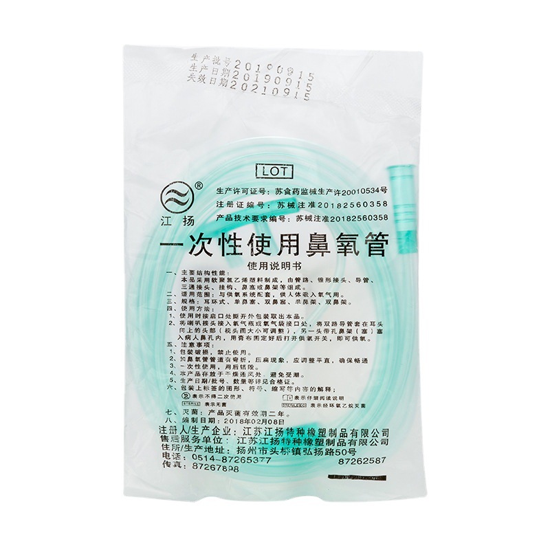 直式鼻氧管由接头、粗导管、细导管组成。产品经环氧乙烷灭菌。