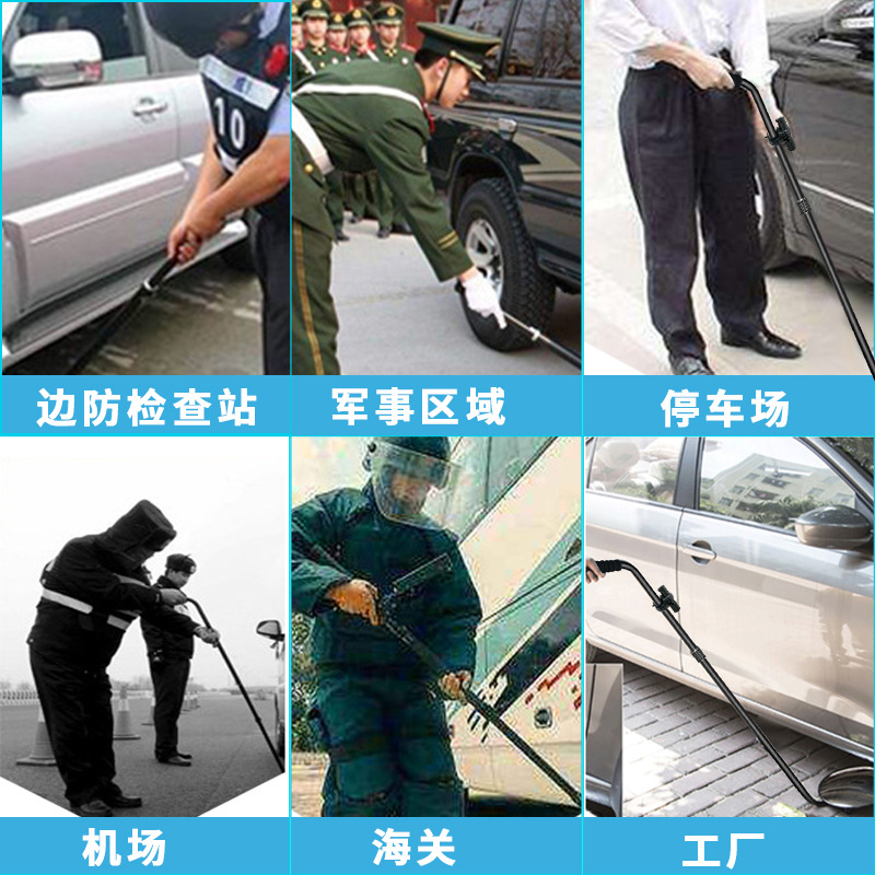 按说明书指导安装后,将镜面保护膜撕下即可使用。本型号专为长时间车底检查作业设计,桌子,椅子,车底以及其他需要俯下搜索的物体:按搜索实际情况,如果光线不足的情况下请加上配备的电筒补充光源以免造成对目标物体搜索的遗漏