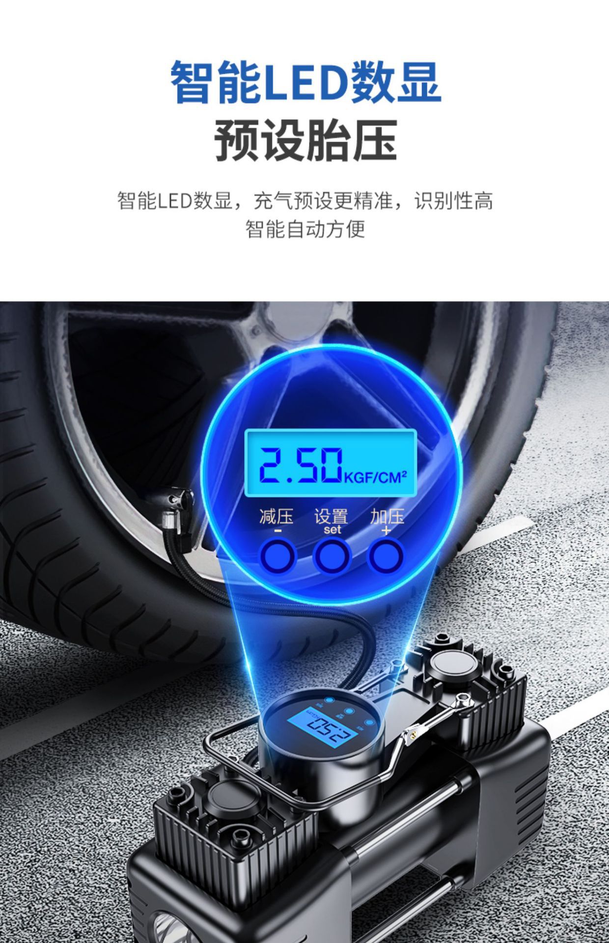 Lai этот автомобильный насос с цифровым дисплеем, автомобильный портативный мощный двухцилиндровый Электрический насос для автомобильных шин