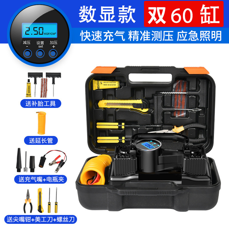 [Указатель] Двойной 60-цилиндровый удлинитель + зажим аккумулятора; [Указатель] Двойная насадка на 60 цилиндров + удлинитель + зажим для аккумулятора + сумка для хранения; [Указатель] Двойной 60-цилиндровый удлинитель + зажим аккумулятора + инструмент для ремонта шин + Предохранитель + ящик для инструментов; [Цифровой дисплей] Двойная надувная насадка на 60 цилиндров + удлинитель + зажим для аккумулятора; [Цифровой дисплей] Двойной 60-цилиндровый удлинитель подачи + зажим для аккумулятора + сумка для хранения; [Цифровой дисплей] Двойной 60-цилиндровый удлинитель подачи + зажим аккумулятора + инструмент для ремонта шин + Предохранитель + ящик для инструментов; Двухцилиндровый воздушный насос с указателем и сумкой; Двухцилиндровый воздушный насос с цифровым дисплеем и чехлом для переноски; Набор инструментов для измерения давления в двухцилиндровом воздушном компрессоре; Двухцилиндровый воздушный насос с цифровым дисплеем и инструментальный ящик