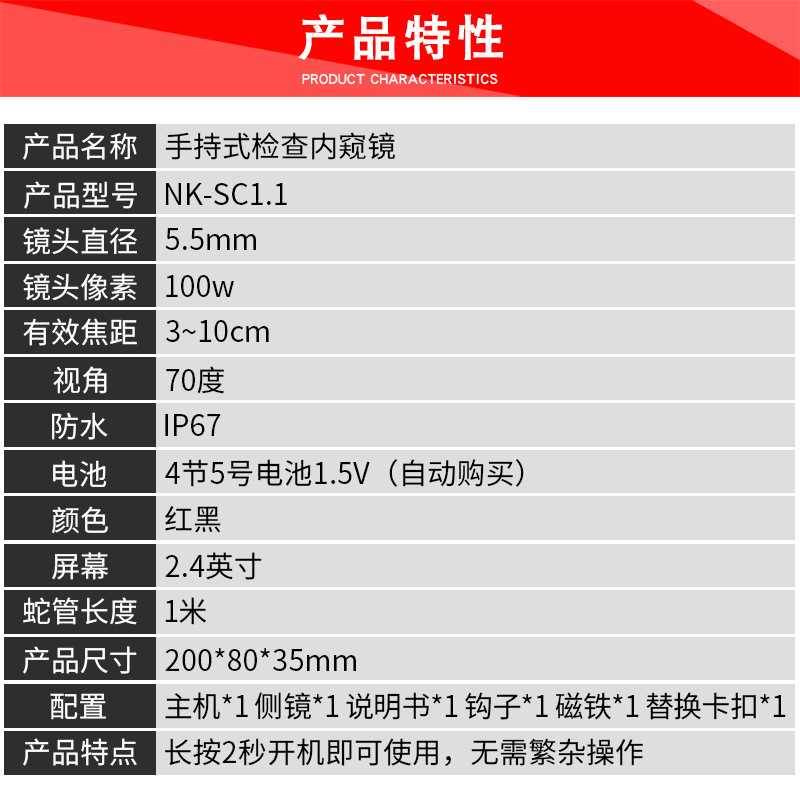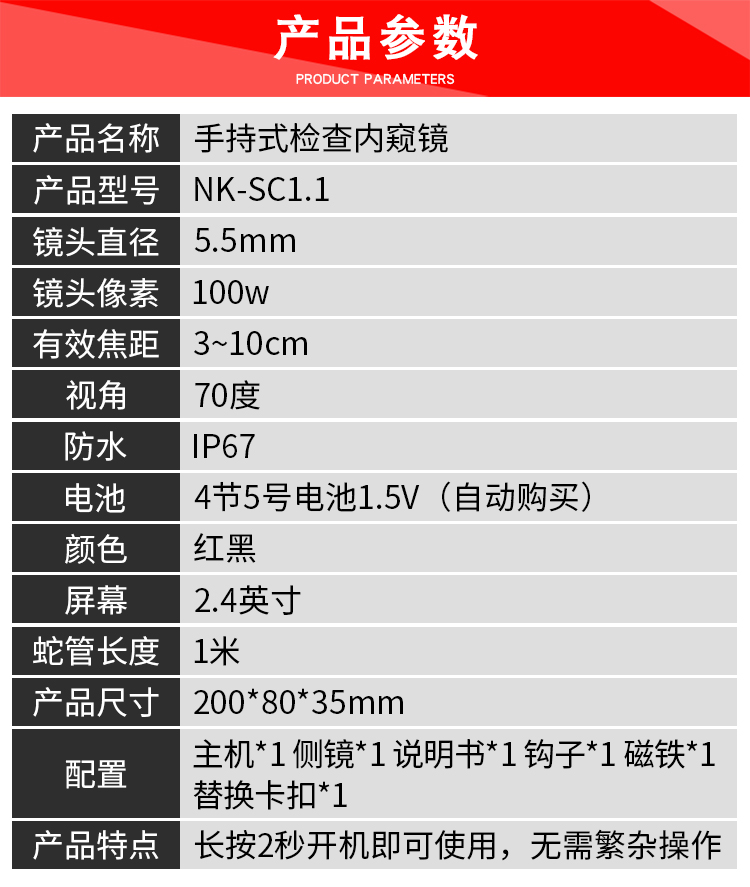 Ручной эндоскоп 1 м жесткий провод [Hot push]