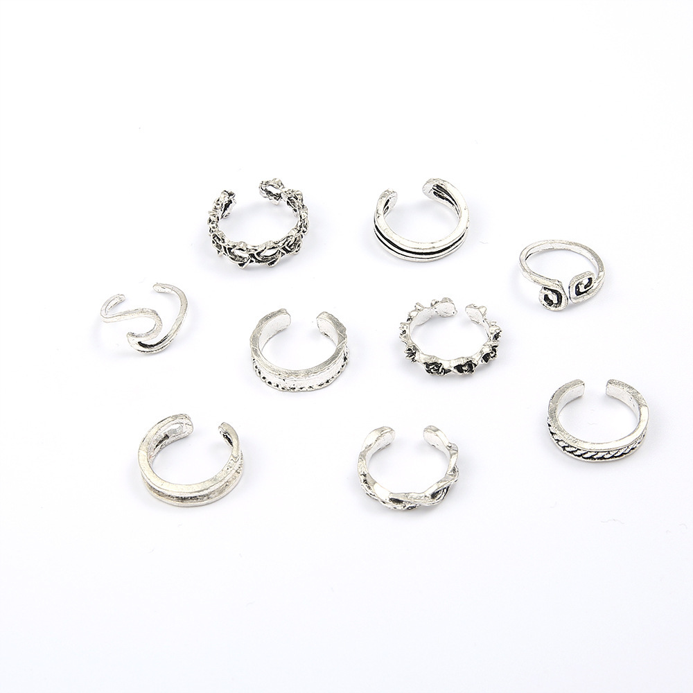 Набор из 9 летних колец в европейском и американском стиле с волнообразным узором: открытые кольца, кольца на пальцы ног, пляжные кольца для пальцев ног, оптом