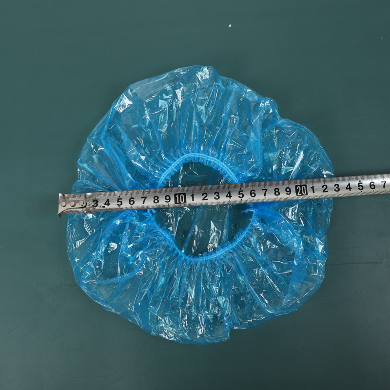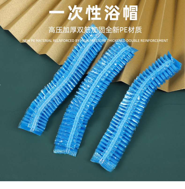 Оптовая Продажа с фабрики утолщенная удлиненная одноразовая пластиковая крышка увеличенная полоса шапочка для душа вакуумная 100 пачка шапочки в полоску