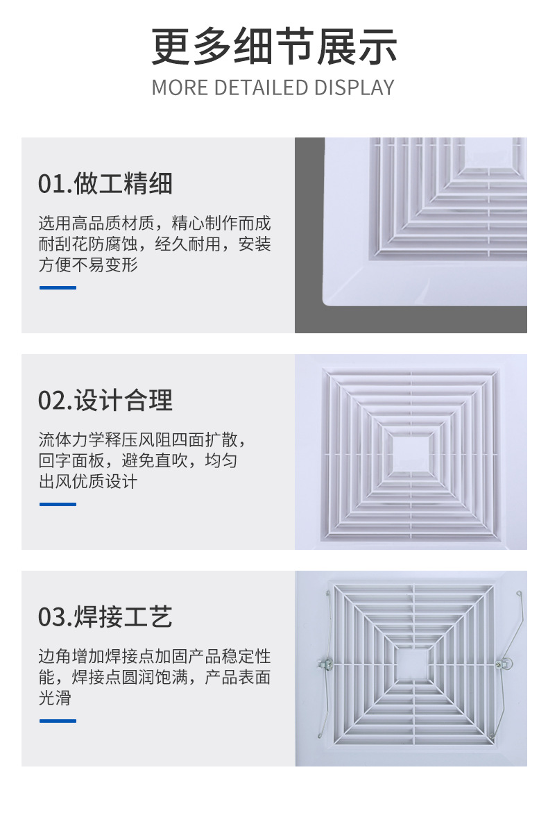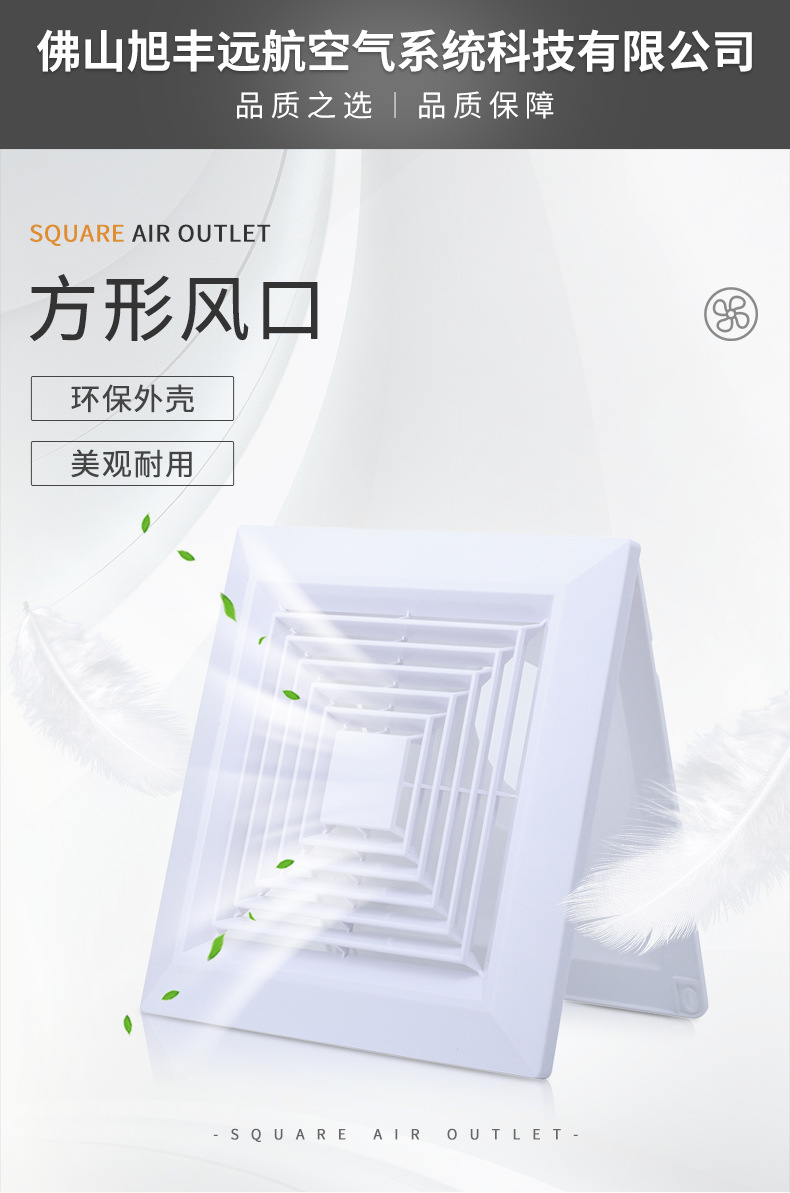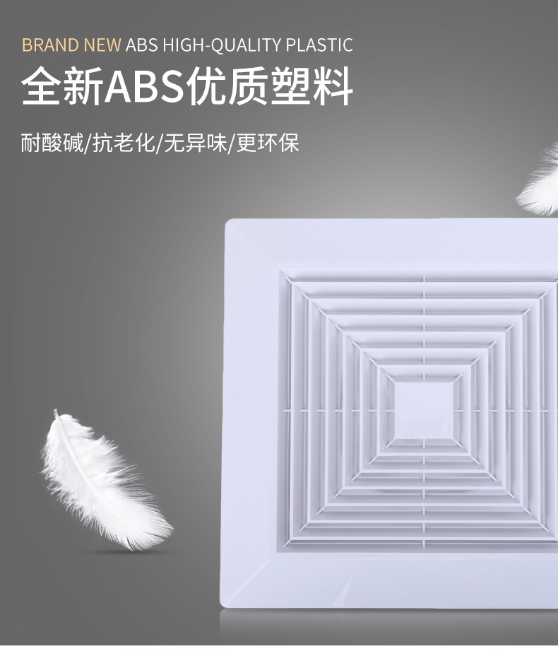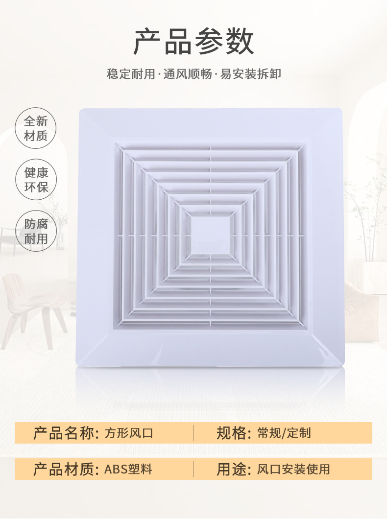 Вентиляционная решетка потолочная ABS, квадратное подключение, круглый пружинный фиксатор, панельный диффузор, воздуховод, устойчивый к коррозии