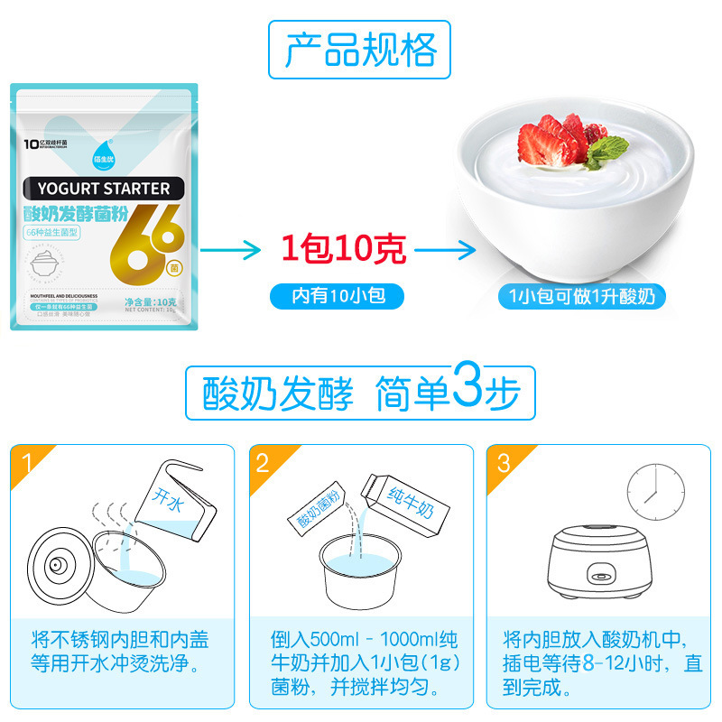 Бактерии для домашнего йогурта Baishengyou 66: пробиотический порошок, молочнокислые бактерии, бифидобактерии, стартовая культура