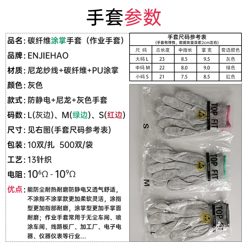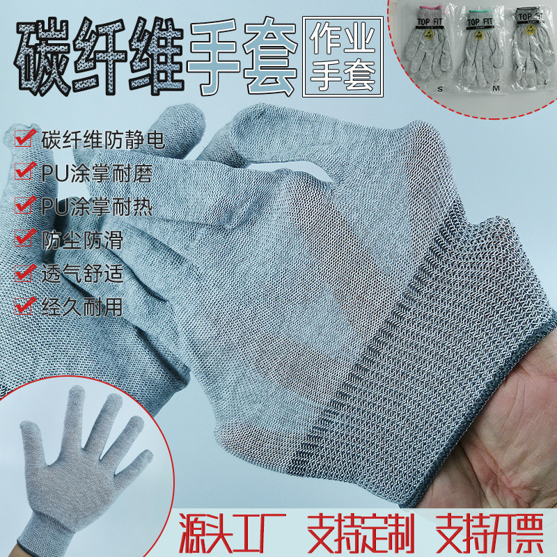 Углеродного волокна перчатки двухсторонние трикотажные нейлон анти-статическое защиты рук перчатки пыль-Бесплатная охраны труда перчатки оптом