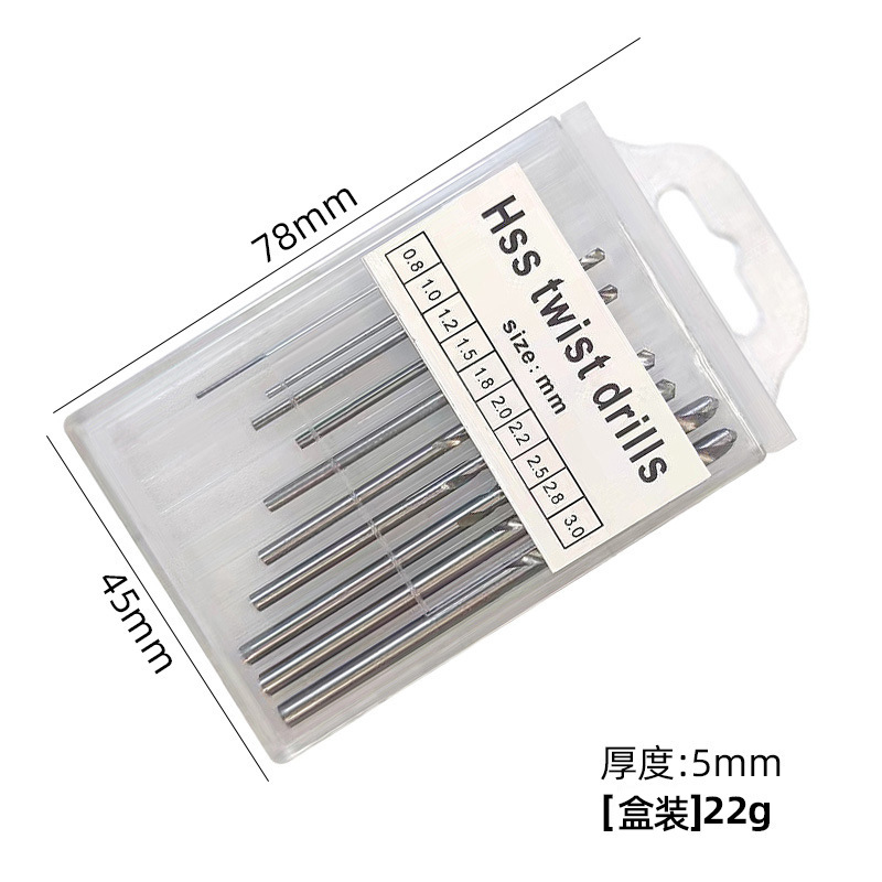 10pcs钻头(0.8-3.0):(0.8,1.0,1.2,1.5,1.8,2.0,2.2,2.5,2.8,3.0)各一支