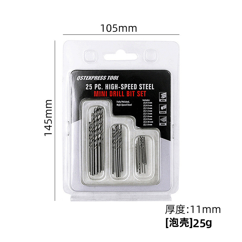 | 25PCS麻花钻泡壳 | 145x105x11 | 泡壳装 | 25 | 500 | 48x34x28 | 14.5 |