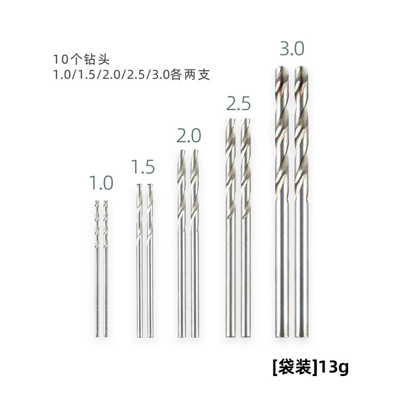 10pcs钻头是(1.0-1.5-2.0-2.5-3.0)各2个