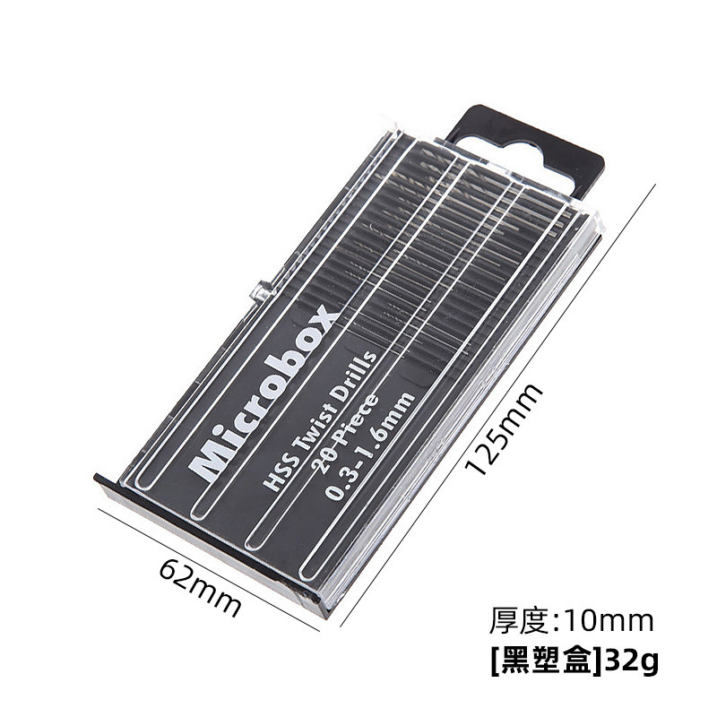 | 20pcs麻花钻黑塑盒 | 125x60x10 | 黑盒装 | 32 | 500 | 42x33x32 | 18 |