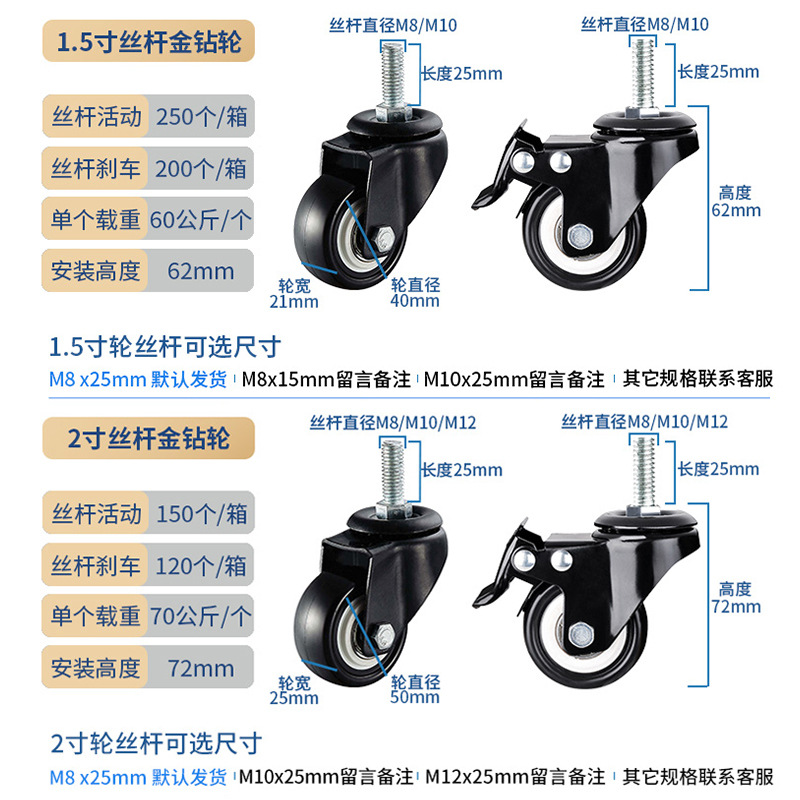1.5inch фиксированное колесо с плоским дном*Золотой бриллиант; 1.5inch движущееся колесо с плоским дном*Золотой бриллиант; 1.5inch тормозное колесо с плоским дном*Золотой бриллиант; 1.5inch Винтовое подвижное колесо*Золотой бриллиант; 1.5inch Винтовое тормозное колесо*Золотой бриллиант; 2inch фиксированное колесо с плоским дном*Золотой бриллиант; 2inch движущееся колесо с плоским дном*Золотой бриллиант; 2inch тормозное колесо с плоским дном*Золотой бриллиант; 2inch Винтовое подвижное колесо*Золотой бриллиант; 2inch Винтовое тормозное колесо*Золотой бриллиант; 2.5inch фиксированное колесо с плоским дном*Золотой бриллиант; 2.5inch движущееся колесо с плоским дном*Золотой бриллиант; 2.5inch тормозное колесо с плоским дном*Золотой бриллиант; 2.5inch Винтовое подвижное колесо*Золотой бриллиант; 2.5inch Винтовое тормозное колесо*Золотой бриллиант; 1.5inch золотой бриллиант на одном колесе*золотой бриллиант; 2inch золотой бриллиант на одном колесе*золотой бриллиант