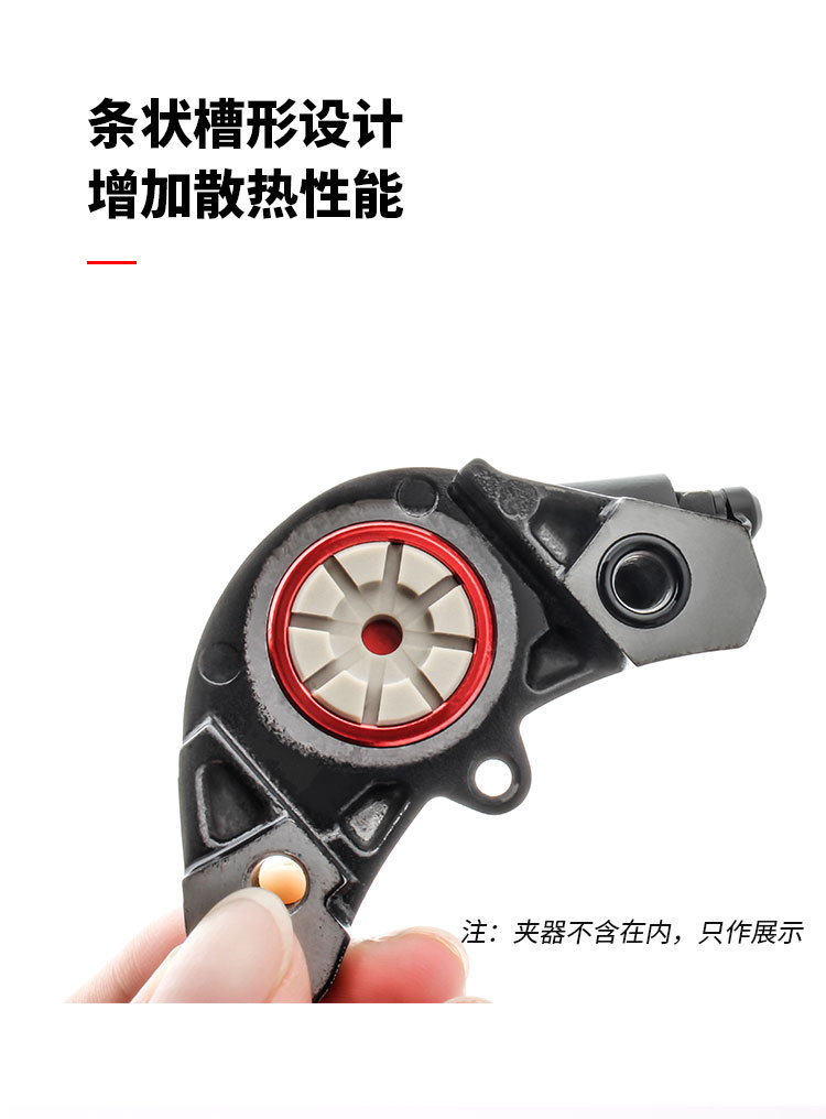 铝合金+进口耐高温材质,替代原陶瓷活塞,杜绝侧漏,让刹车使用更安全,刹力充沛更持久,密封性好,条状槽型设计,减少热传递接触面积,增加气流穿梭,有利于散热。