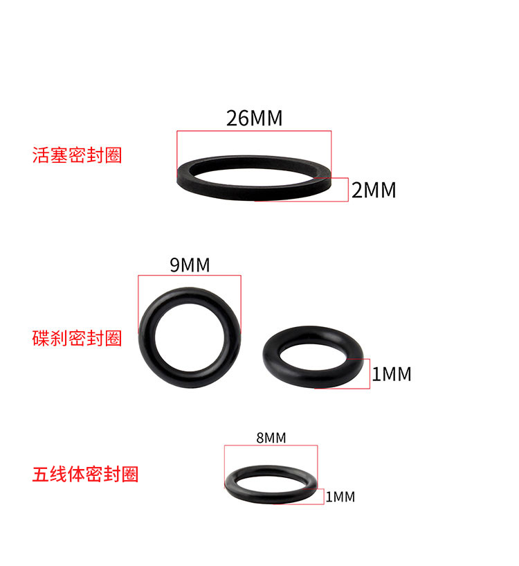 包装清单:活塞*2 活塞密封圈*2 碟刹密封圈*2五线体密封圈*4