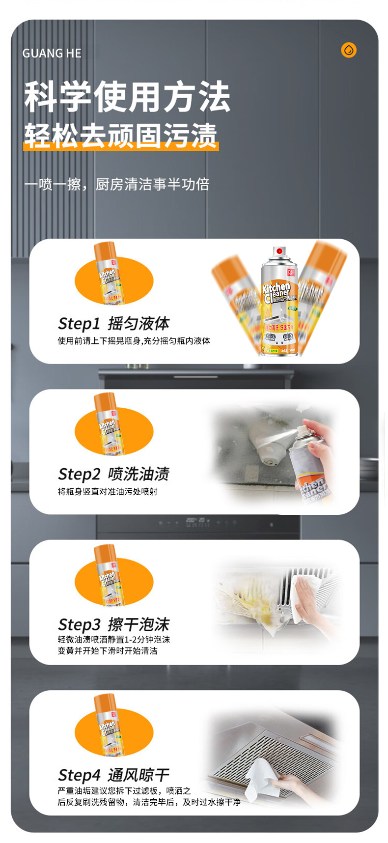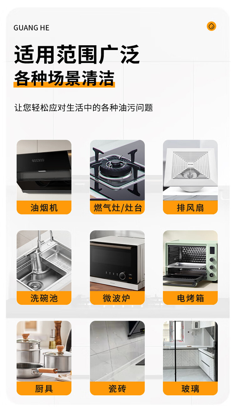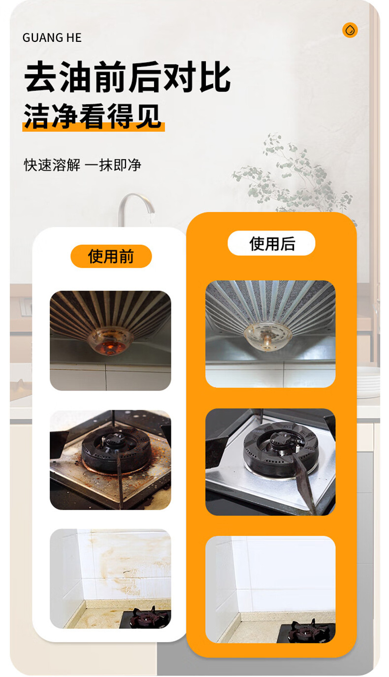 [Guanghe] Очиститель тяжелых масляных пятен, мощный очиститель масляных пятен, кухонный очиститель, обезжириватель вытяжки