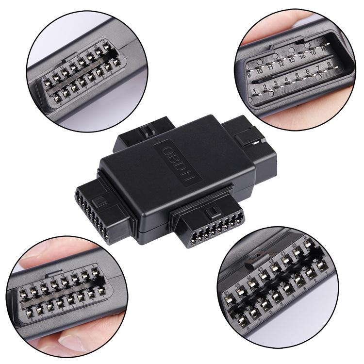 说明:OBD2一分三满芯插头,兼容性强,可同时接3个OBD设备(有些设备之间冲突就不可以同时使用)