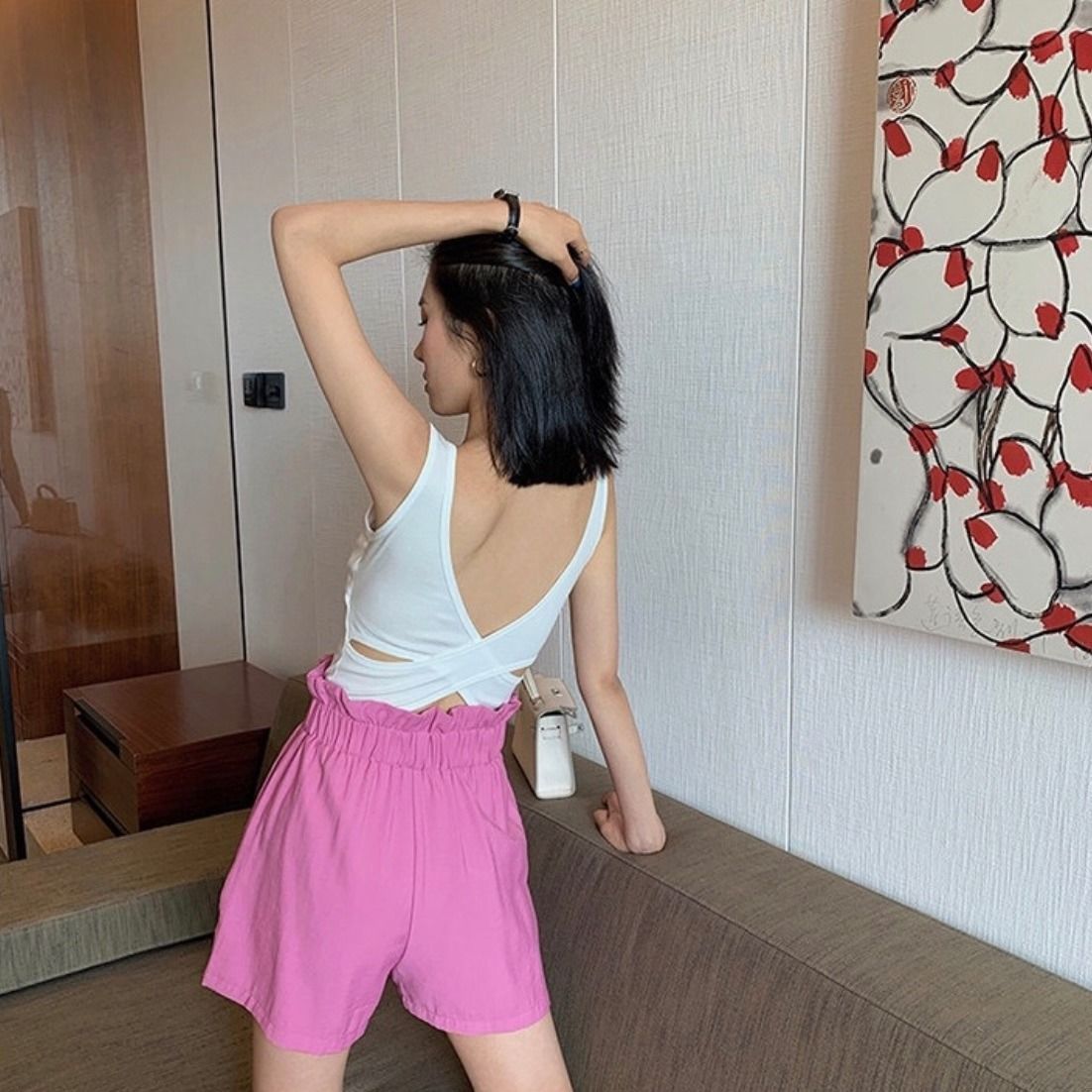Женский жилет Kaka в том же стиле с подкладкой для груди, хлопковая нить, большая U-образная спина, задняя часть, полый крест, открытая спина, широкий плечевой жилет