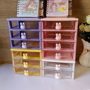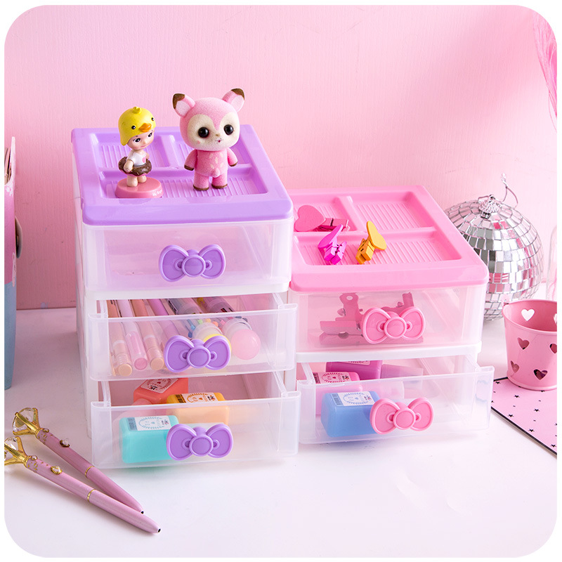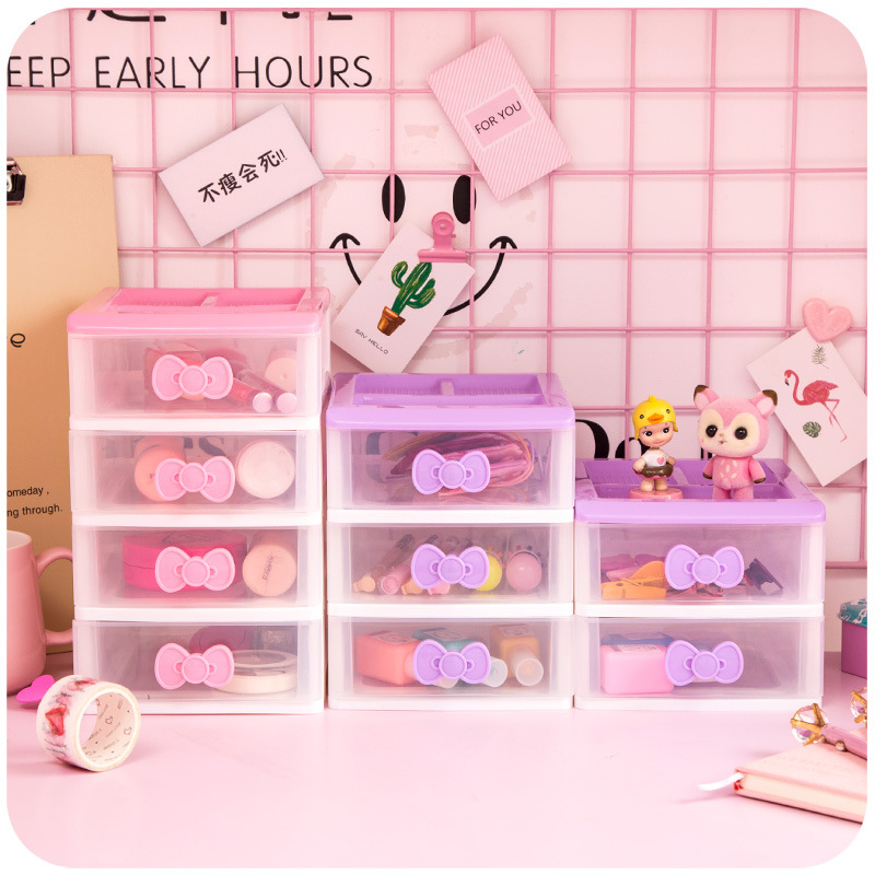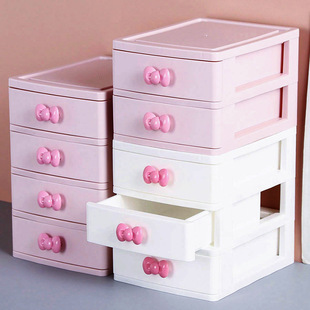 品名:蝴蝶结粉色塑料抽屉柜 少女饰品4层桌面收纳柜文具化妆品抽屉层柜 |