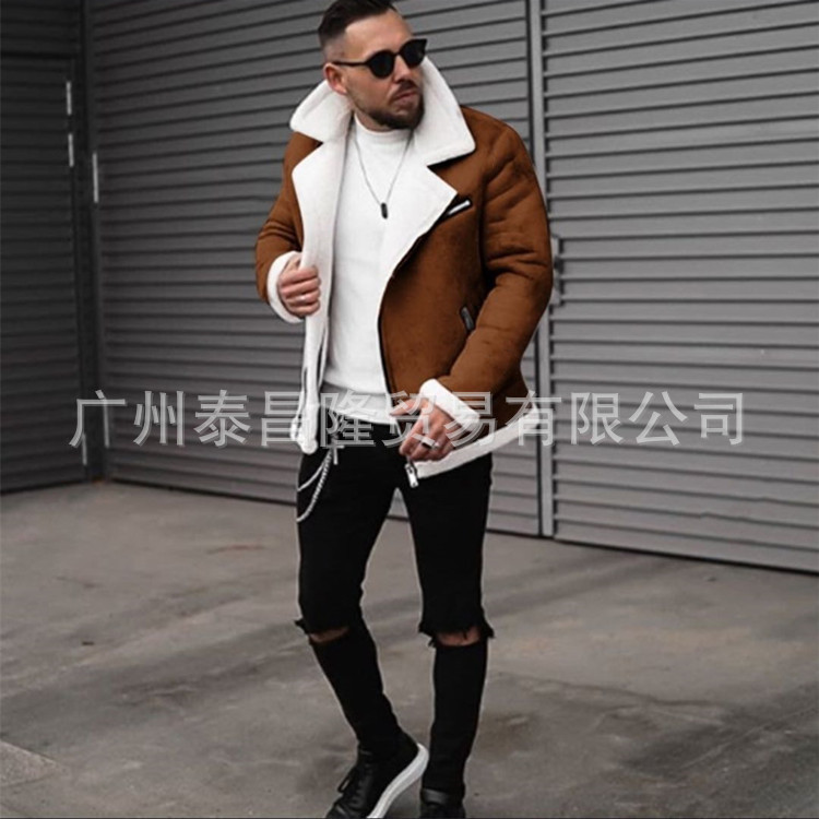 Желаю Amazon Independent Station для внешней торговли, новая флисовая композитная замшевая мужская теплая куртка с лацканами на осень и зиму