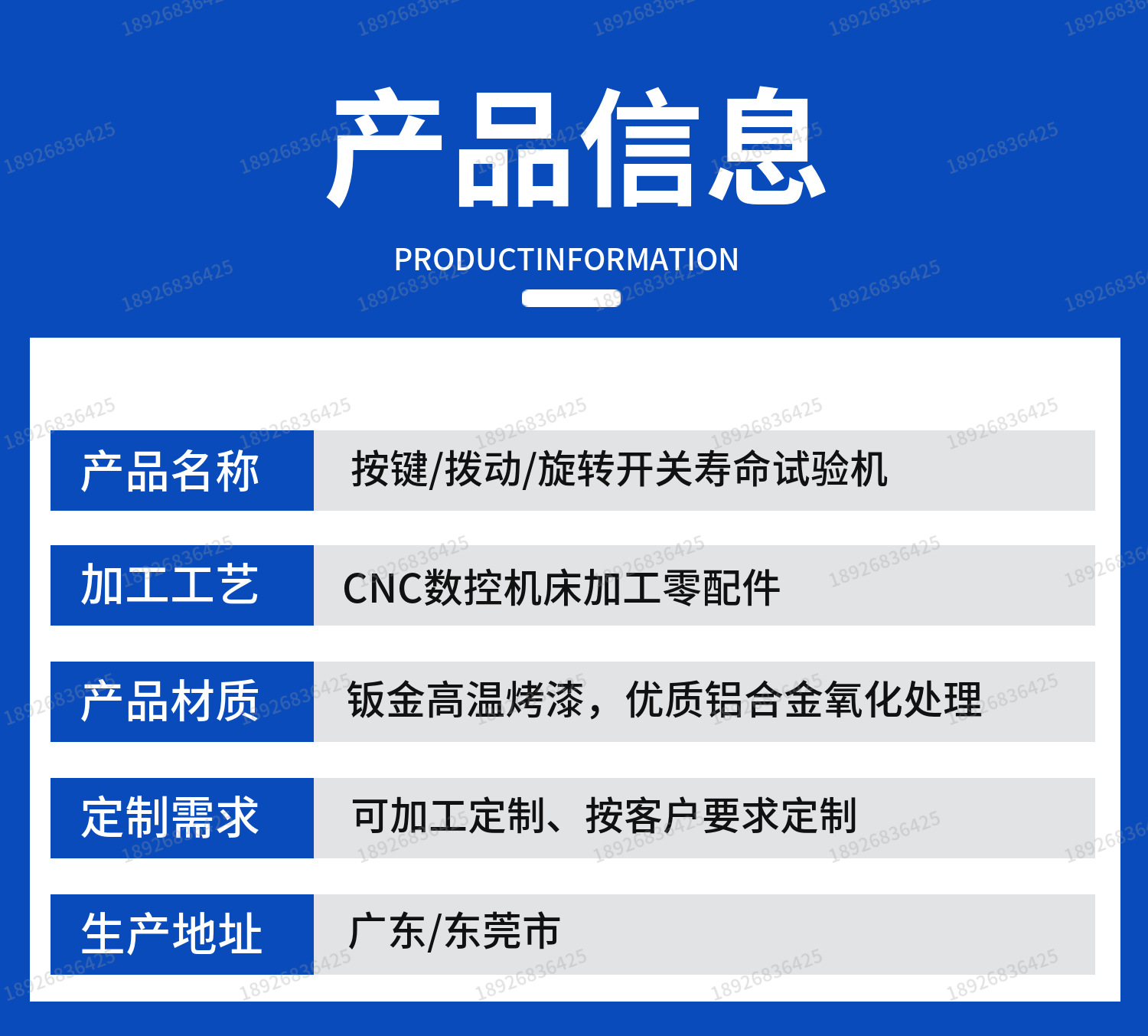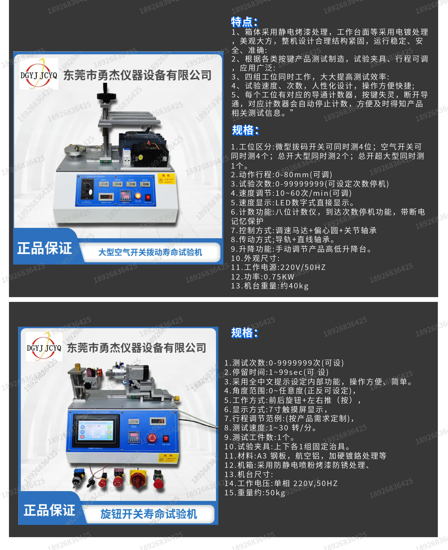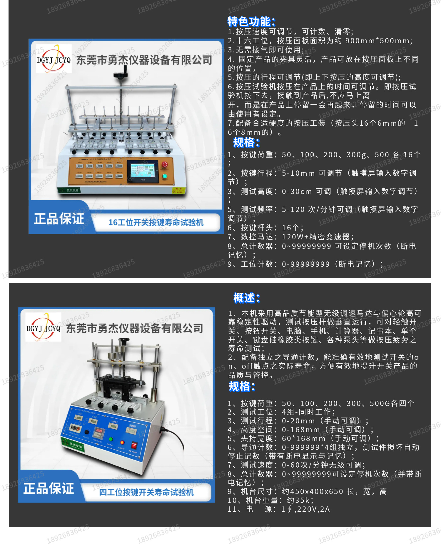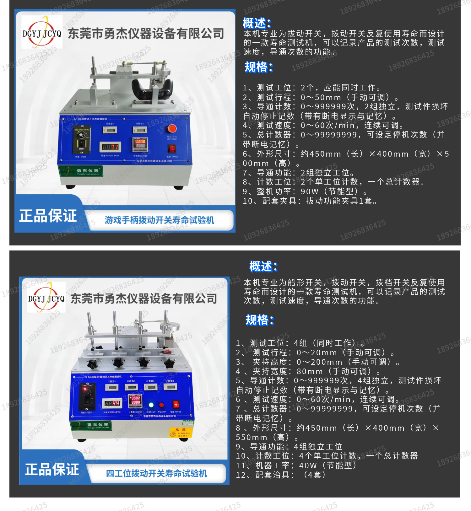 Эта машина представляет собой машину для испытаний на срок службы, специализирующуюся на сроке службы переключателя в форме лодки. Он может записывать количество тестов, скорость тестирования и количество раз включения продукта.