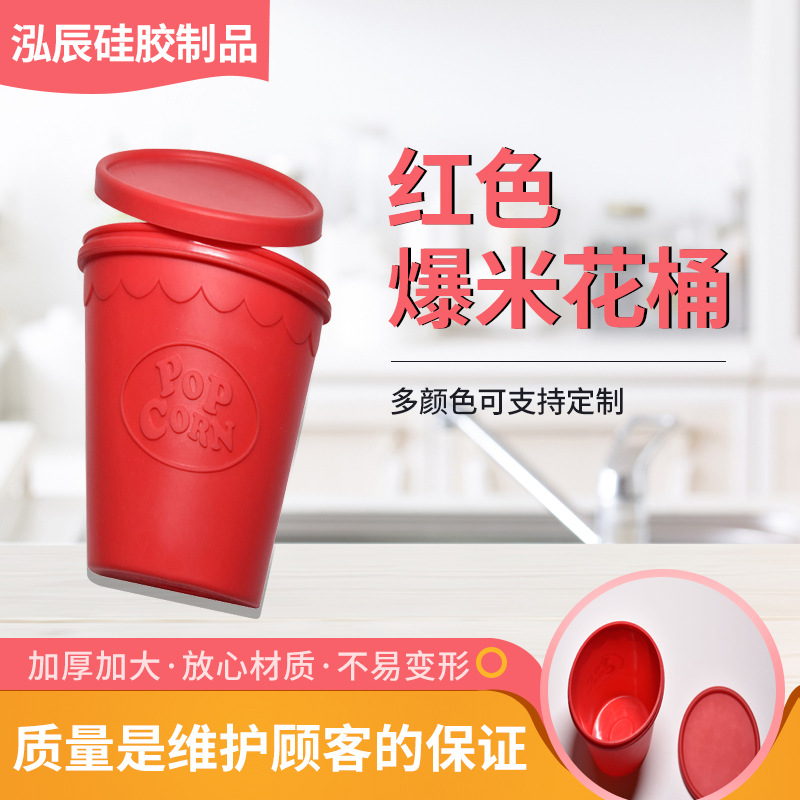 Бытовое пищевое утолщенное силиконовое красное ведро для попкорна, простое и расширяемое пищевое ведро для попкорна