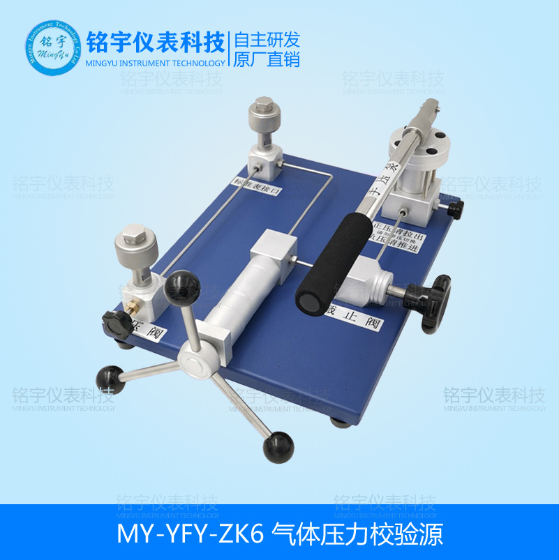 MY-YFY-ZK6气体压力校验源是校验压力(差压)变送器、精密压力表、普通压表、压力开关等仪器仪表的辅助设备其它压力仪器仪表提供压力源。,与压力标准器配合,完成检测校准工作。该系列产品主要特点是:结构简单,造压稳定,操作省力。气体压力校验源是集真空、气压两种压力真空校验台,由放气阀,造压系统和压力输出三部分构成。