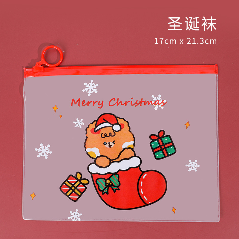 Мультяшная Рождественская сумка для файлов с кольцом, сумка на молнии в форме сердца для студентов и девочек, многофункциональная прозрачная сумка для хранения канцелярских принадлежностей