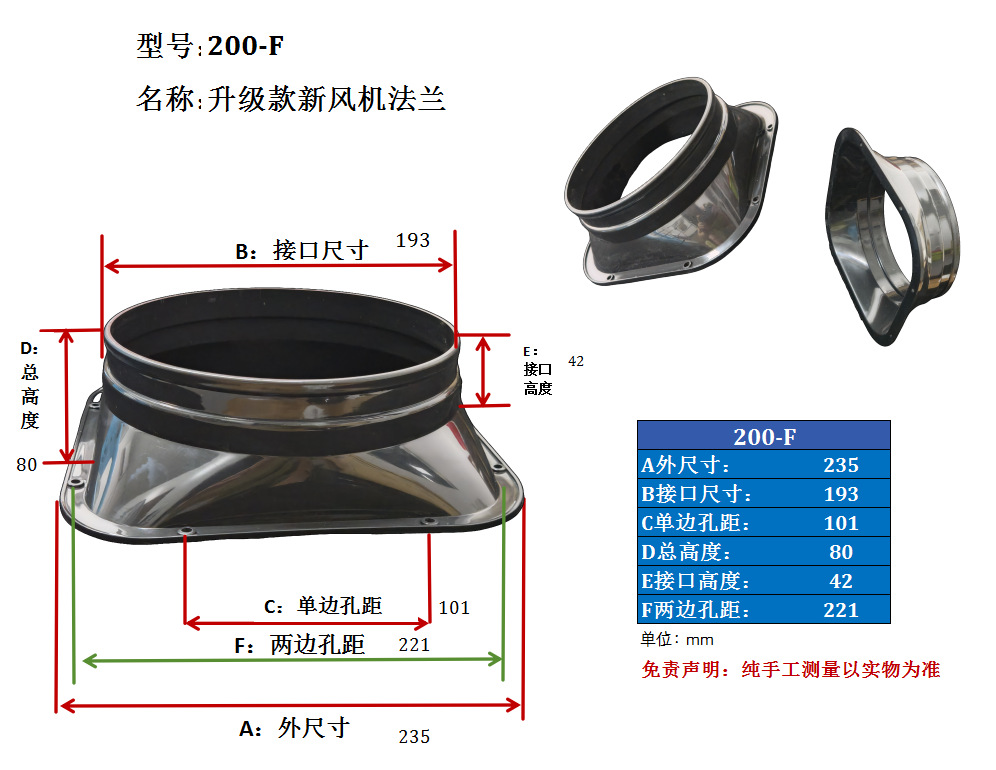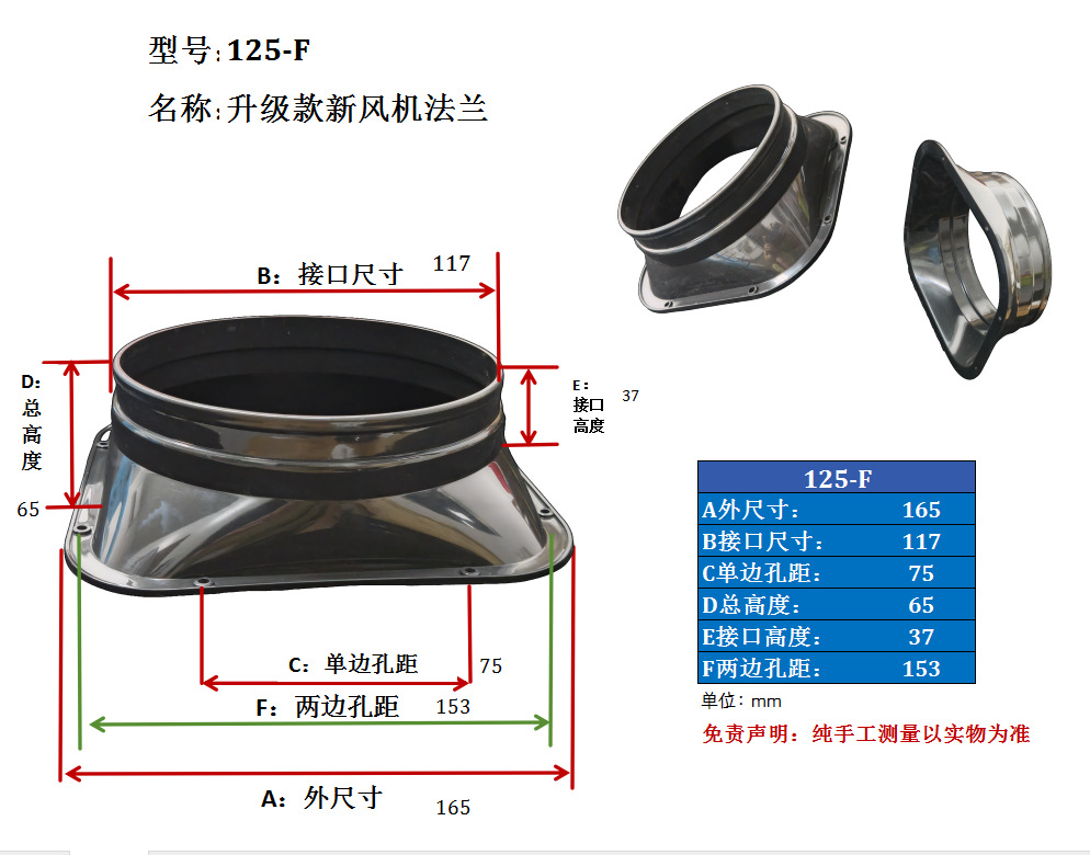 75 фланцев (1400 штук в коробке, по 2 юаня за штуку); 100 фланцев (800 штук в коробке, по 2 юаня за штуку); 125 фланец (500 штук в коробке, 2,5 юаня за штуку); 150 фланцев (300 штук в коробке, по 2,5 юаня за штуку); 200 фланцев (200 штук в коробке, по 3 юаня за штуку); 250 фланцев (120 штук в коробке, по 4 юаня каждый); 300 фланцев (100 штук в коробке, по 5 юаней за штуку); 100 фланцев белого цвета (360 штук в коробке, 3,23 юаня за штуку); 150 фланцев белого цвета (90 штук в коробке, 4,31 юаня за штуку); 200 фланцев белого цвета (90 штук в коробке, 4,31 юаня за штуку); 250 фланцев белого цвета (40 штук в коробке, 6,47 юаня за штуку); 300 фланцев белого цвета (40 штук в коробке, 6,47 юаня за штуку); Фланец вентилятора 100-F (400 шт./кор.); Фланец вентилятора 110-F (400 шт./кор.); Фланец вентилятора 125-Ф (400 шт/кор.); Фланец вентилятора 150-F (300 шт./кор.); Фланец вентилятора 160-F (240 шт./кор.); Фланец вентилятора 200-Ф (150 шт/кор.); Фланец вентилятора 250-Ф (100 шт/кор.); Фланец вентилятора 300-F (80 шт./кор.)