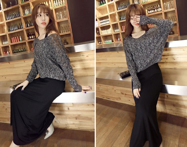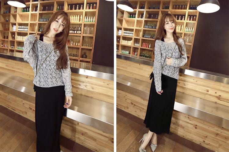 2023 Женский трикотажный костюм больших размеров с длинными рукавами, юбка, приталенное платье из двух частей в Корейском стиле, платье