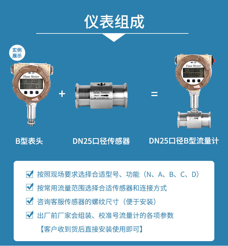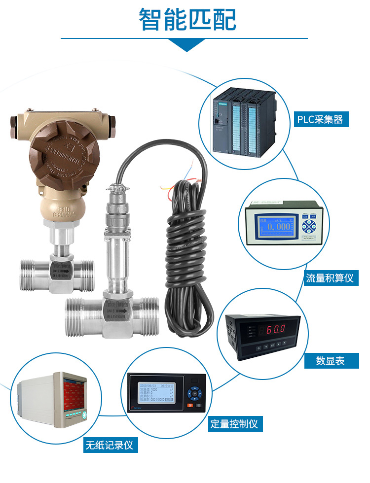 该类涡轮流量计产品本身不具备现场显示功能,仅将流量信号远传输出。流量信号可分为脉冲信号或电流信号(4-20mA);仪表价格低廉,集成度高,体积小巧,特别适用于与二次显示仪、PLC、DCS等计算机控制系统配合使用。