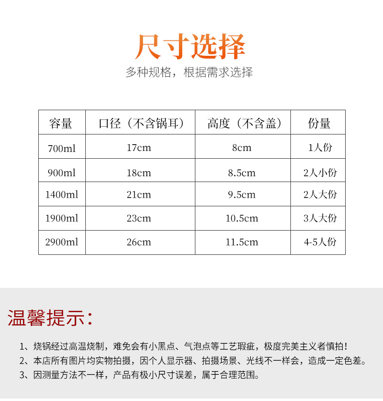 Глубокий горшок 900 мл (для 2 человек); Глубокий горшок 1400 мл (2 человека); Глубокий горшок 1900 мл (3 человека); Глубокий горшок 2900 мл (4-5 человек)