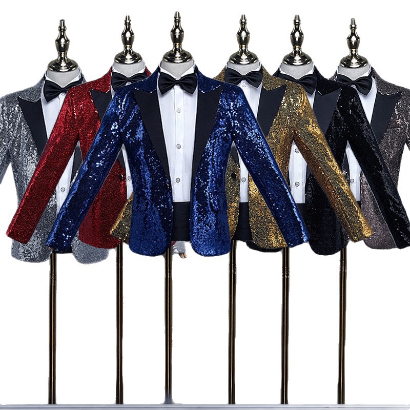 Детский цветной костюм с пайетками 1 июня Школьная форма для выступлений Танцевальный конкурс фортепиано Празднование мужской школы Шоу ведущей модели