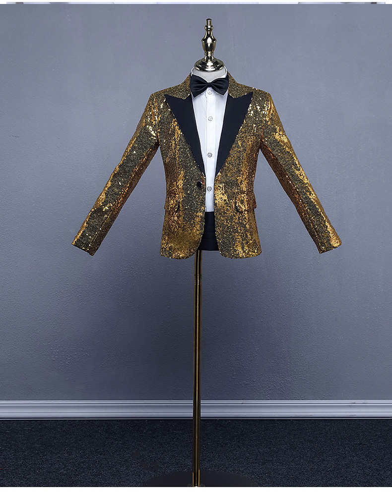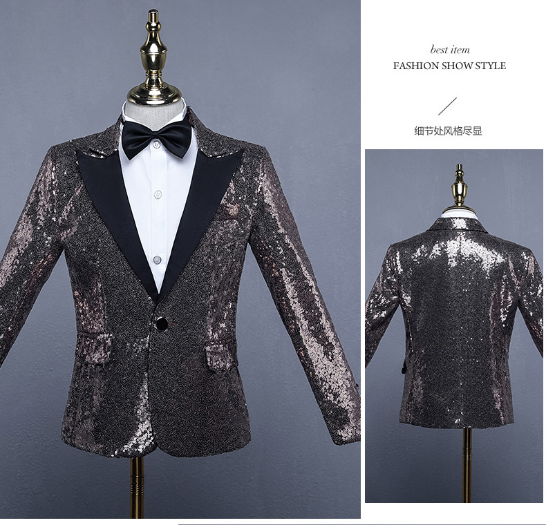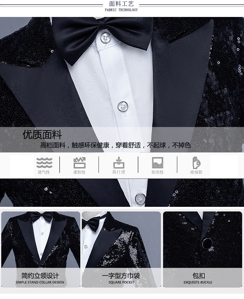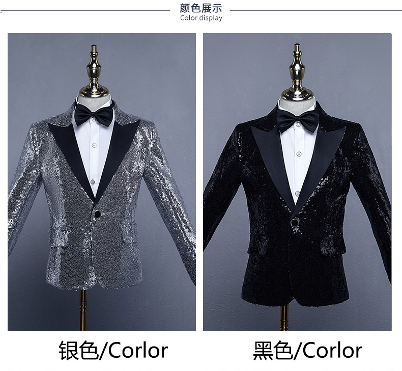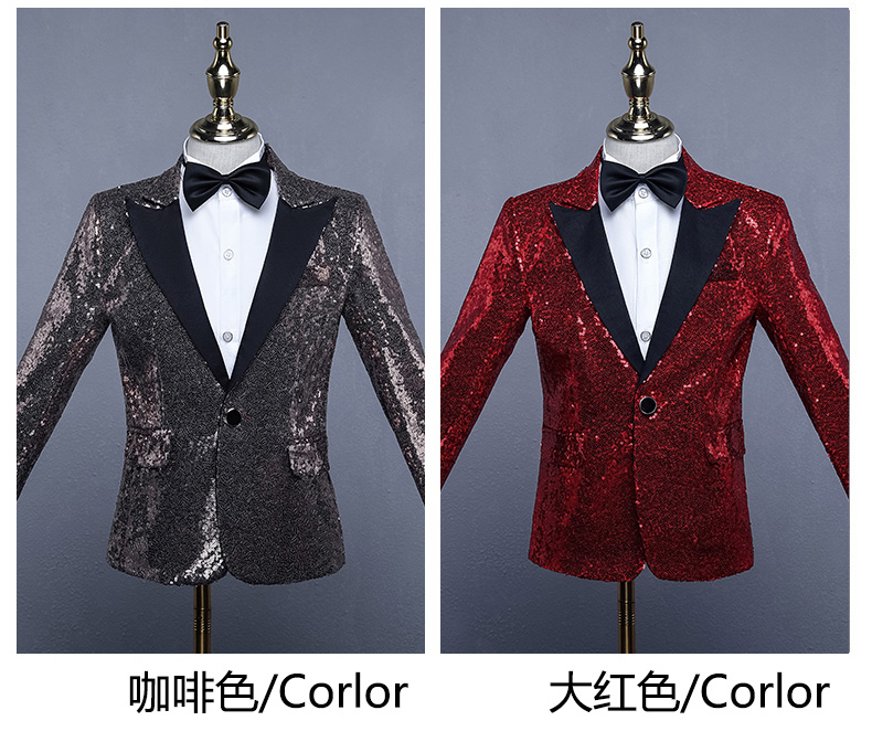注意事项:因为亮片西装比较亮在拍摄过程中图片和实物有稍许色差,因为灯光打亮了衣服亮片太亮,打暗了衣服图片又会暗一点,所以介意者慎拍
