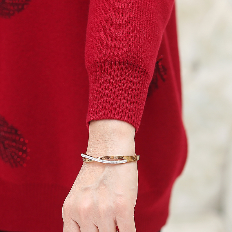 926 Утолщенный свитер плюс удобрение для увеличения шерсти для людей среднего и пожилого возраста на половину шерстяной свитер с высоким воротом 200 Джин Толстая шерсть для матери 58,6%