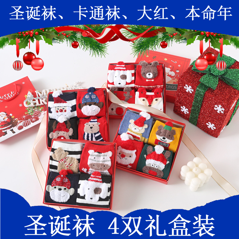 Новогодние носки женские в коробке до середины икры зимние женские носки красные на год рождения подарок объемные Мультяшные Женские Подарочные коробки хлопковые носки