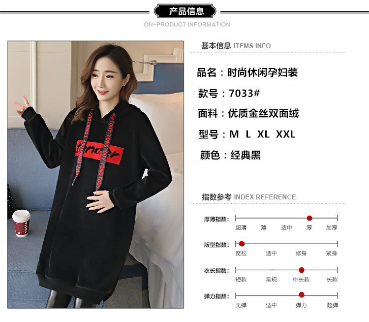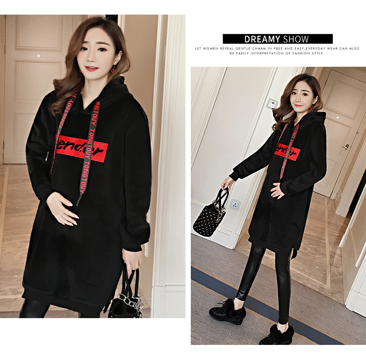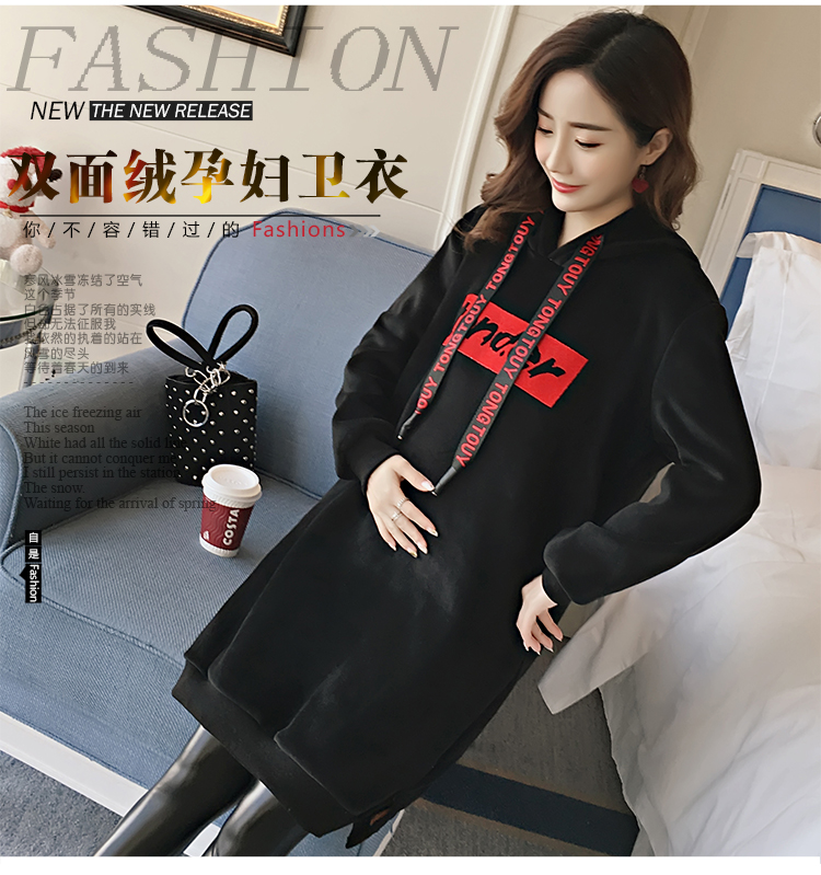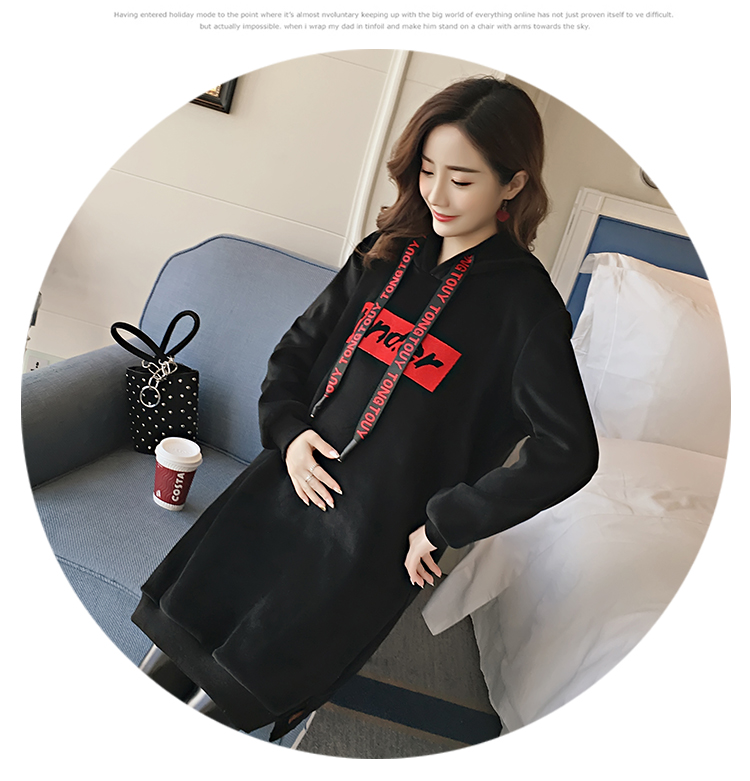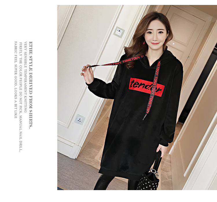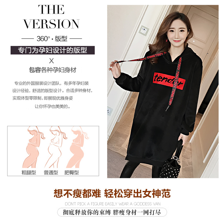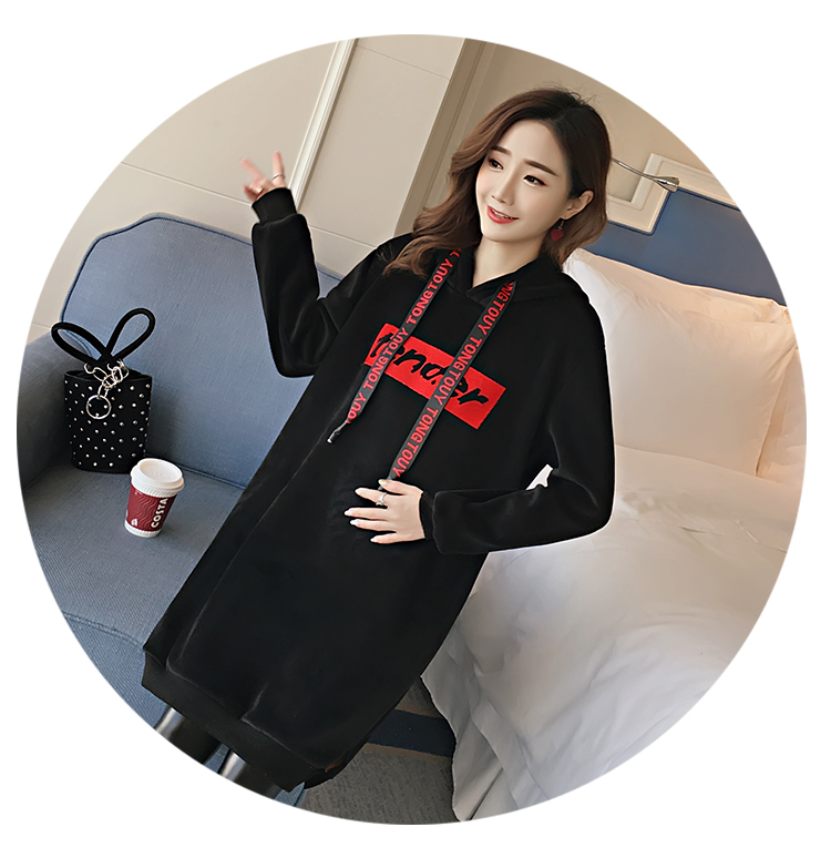 Одежда для беременных, свободная толстовка, осенне-зимнее платье средней длины, золотистый бархатный теплый весенне-осенний новый модный топ