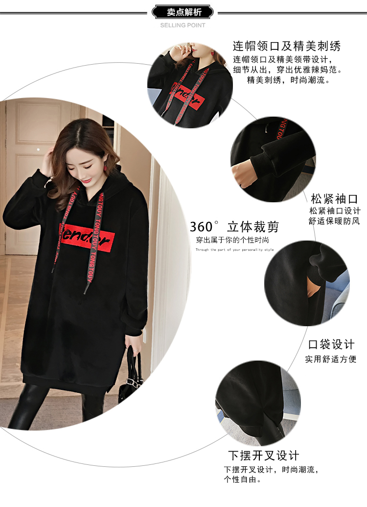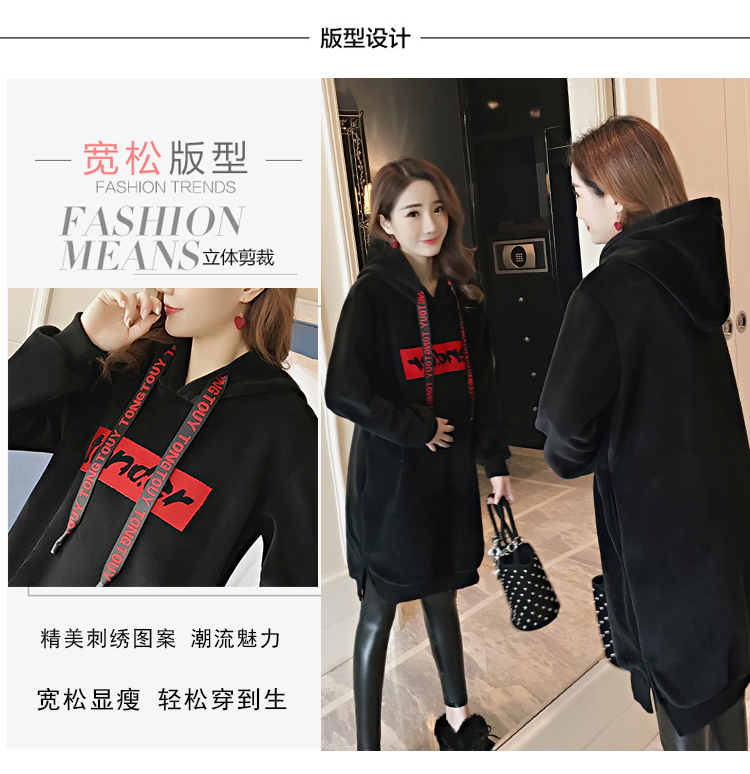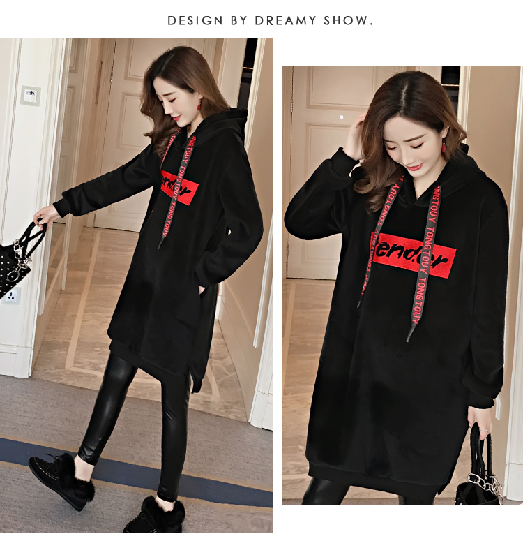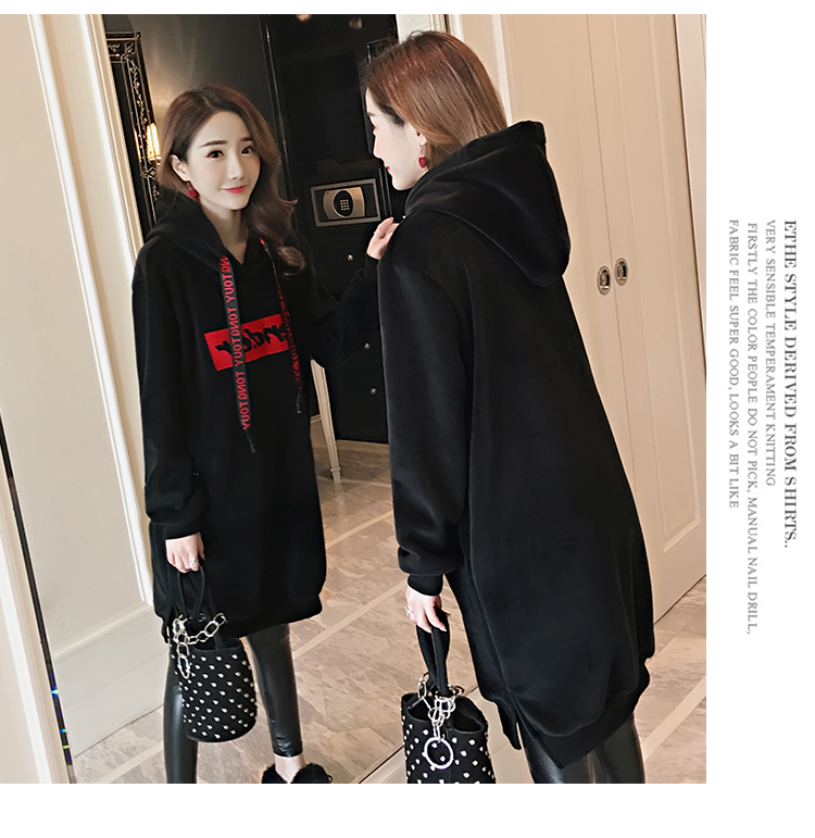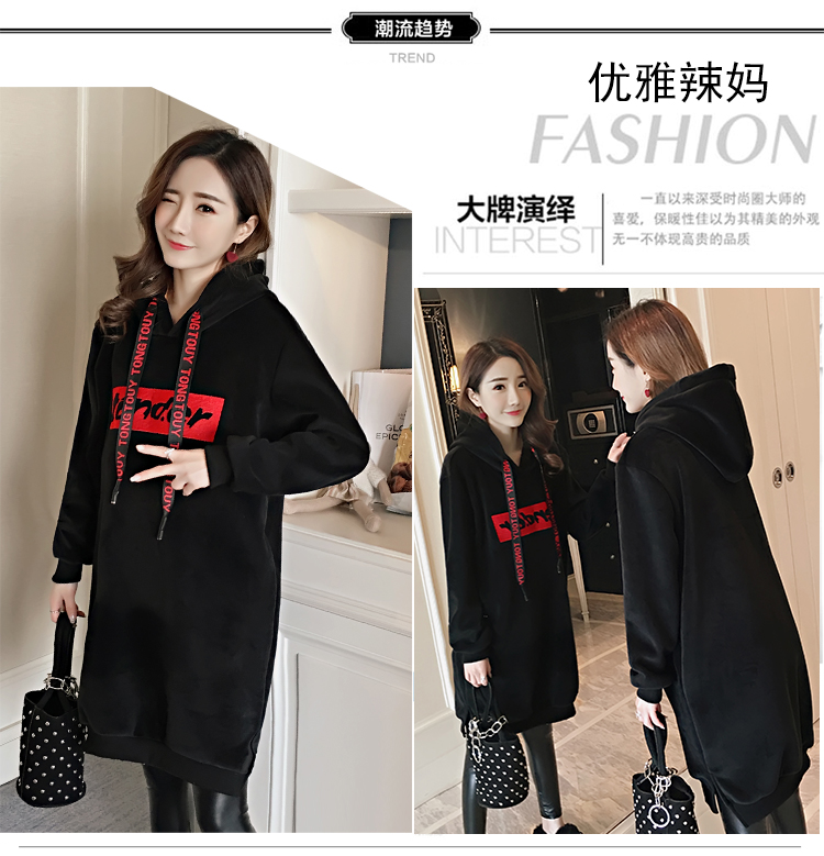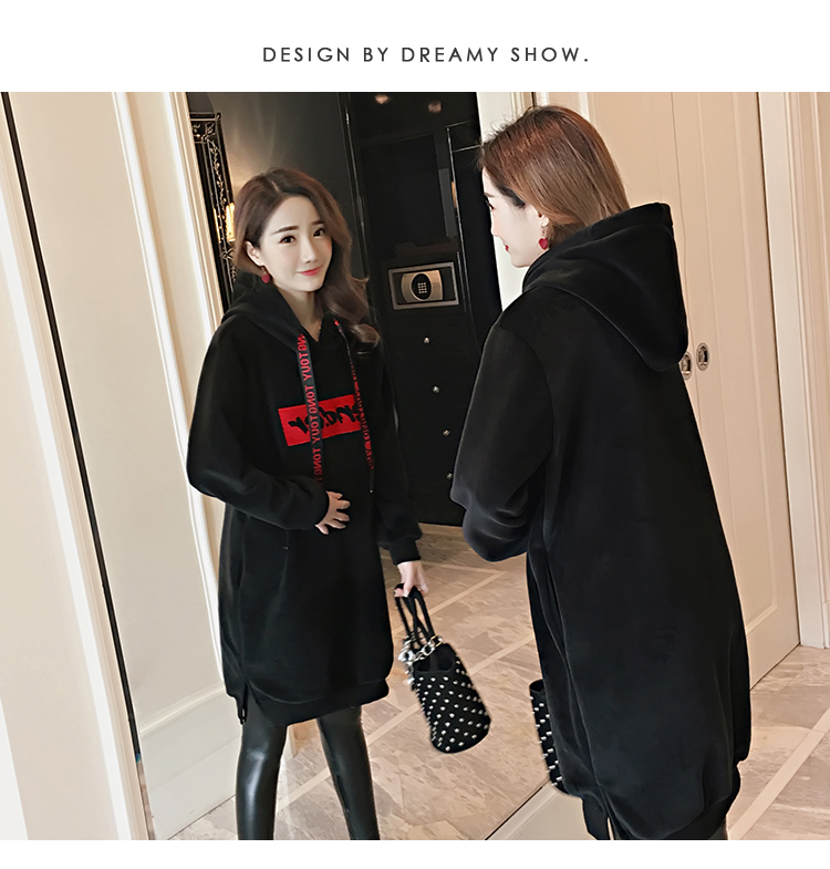 Одежда для беременных, свободная толстовка, осенне-зимнее платье средней длины, золотистый бархатный теплый весенне-осенний новый модный топ