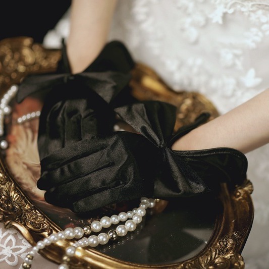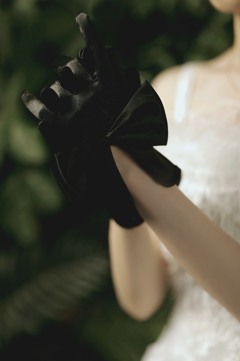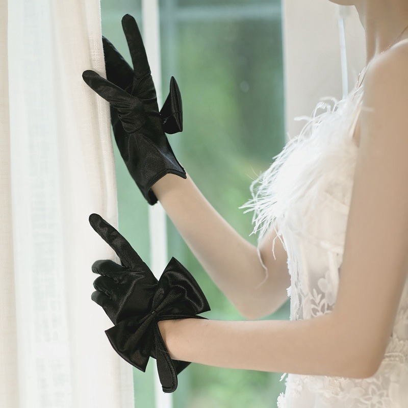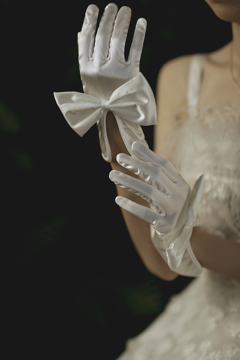 Свадебные перчатки Свадебное платье Короткие перчатки Фото перчатки для фотостудии Портретные аксессуары Атласные белые короткие банты