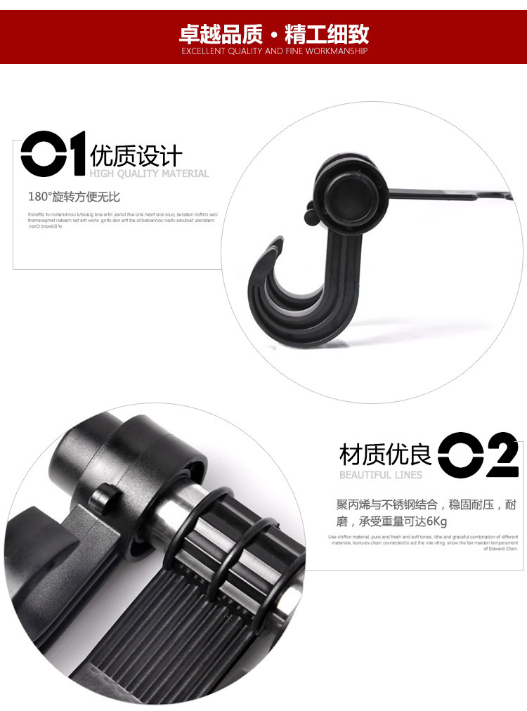 使用性能:你是否有这样的情况,去超市购物回家,零零散散的把一堆堆袋袋往车上一放,有时会弄脏了车子,有时东西在行驶的过程中从座位上掉下,很麻烦,现在有了这个挂钩,无论是挂在前面还是后面,都可以将物品牢牢的固定在那里。十分方便~ 是你驾车购物生活的好帮手哦!