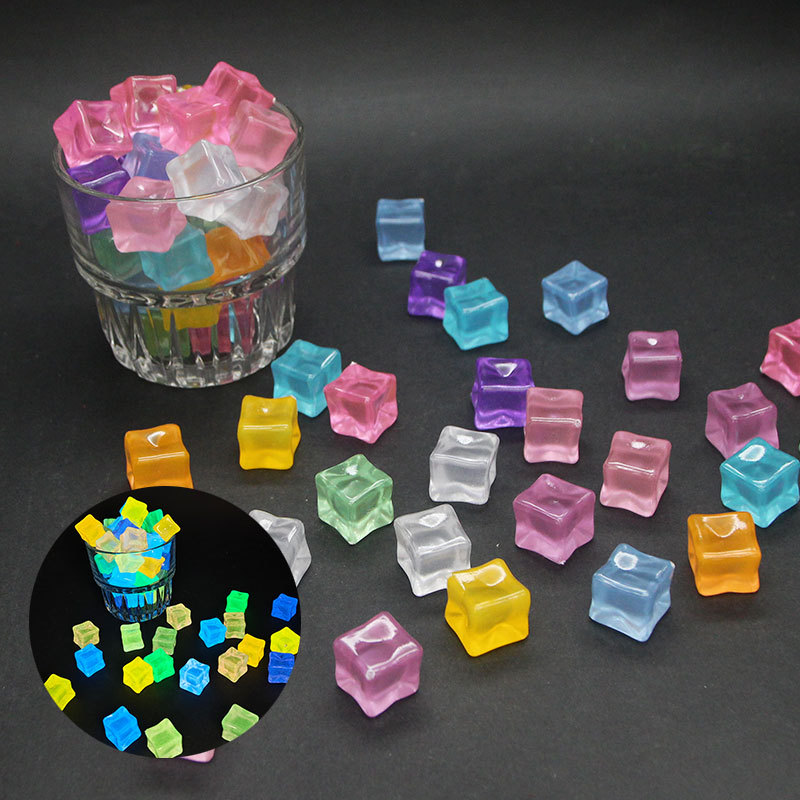 Светящиеся квадратные ледяные кубики 14-18 мм, фото-аксессуары, светящиеся элементы для самостоятельного изготовления украшений, цветные флуоресцентные рождественские светящиеся камни