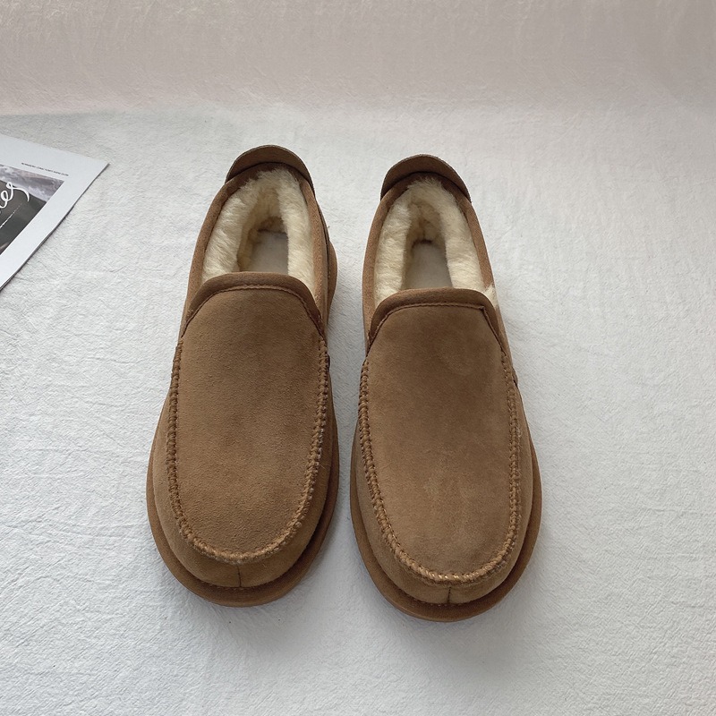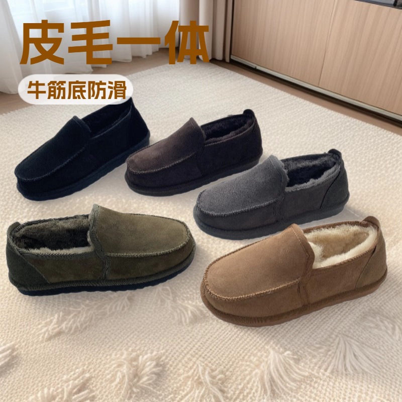 Мужские зимние ботинки на меху, теплые нескользящие зимние сапоги для вождения, шерстяные лоферы из натуральной кожи без застежек, зимний стиль