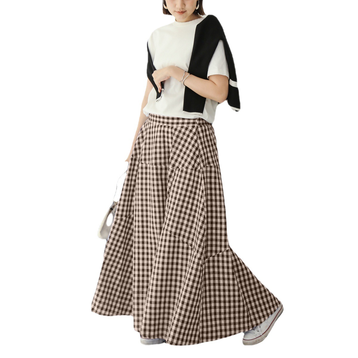 6 цветов, настоящий снимок, горячий стиль Lotte, новинка лета 2025 года, японский стиль, эластичная свободная клетчатая юбка с большим подолом для женщин