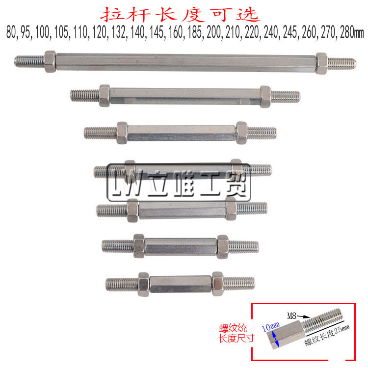 Положительная и обратная шаровые головки (без тяги); М8 шаровой стержень (длина стержня 80 мм); М8 шаровой стержень (длина рычага 95 мм); М8 шаровой рычаг (длина рычага 100 мм); М8 шаровой стержень (длина рычага 105 мм); М8 шаровой стержень (длина стержня 110 мм); М8 шаровой рычаг (длина рычага 120 мм); М8 шаровой рычаг (длина рычага 132 мм); М8 шаровой стержень (длина стержня 140 мм); М8 шаровой стержень (длина рычага 145 мм); М8 шаровой стержень (длина стержня 160 мм); М8 шаровой рычаг (длина рычага 185 мм); М8 шаровой рычаг (длина рычага 200 мм); М8 шаровой стержень (длина стержня 210 мм); М8 шаровой рычаг (длина рычага 220 мм); М8 шаровой стержень (длина стержня 240 мм); М8 шаровой стержень (длина рычага 245 мм); М8 шаровой стержень (длина стержня 260 мм); М8 шаровой стержень (длина стержня 270 мм); М8 шаровой стержень (длина стержня 280 мм); М8 шаровой рычаг (длина рычага 290 мм); М8 шаровой рычаг (длина рычага 300 мм); М8 шаровой стержень (длина стержня 310 мм)
