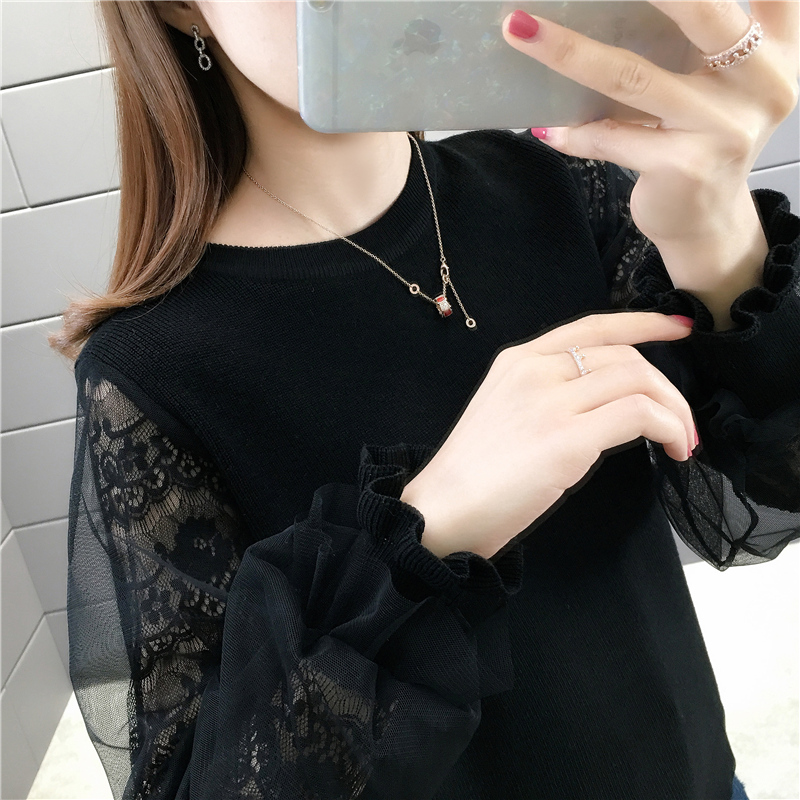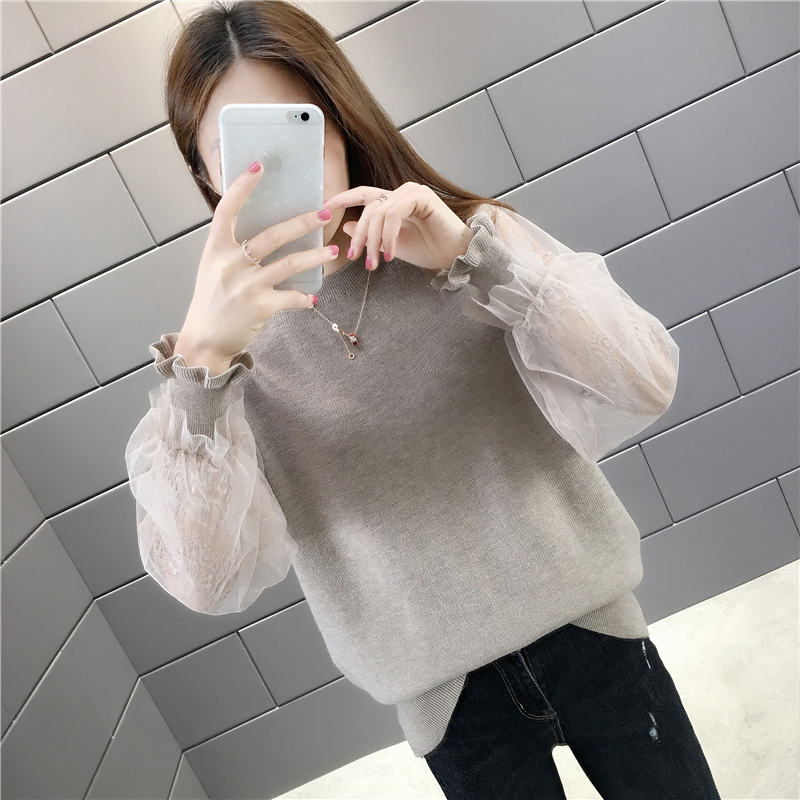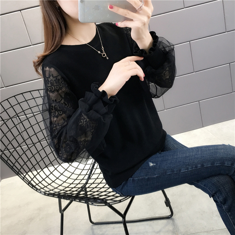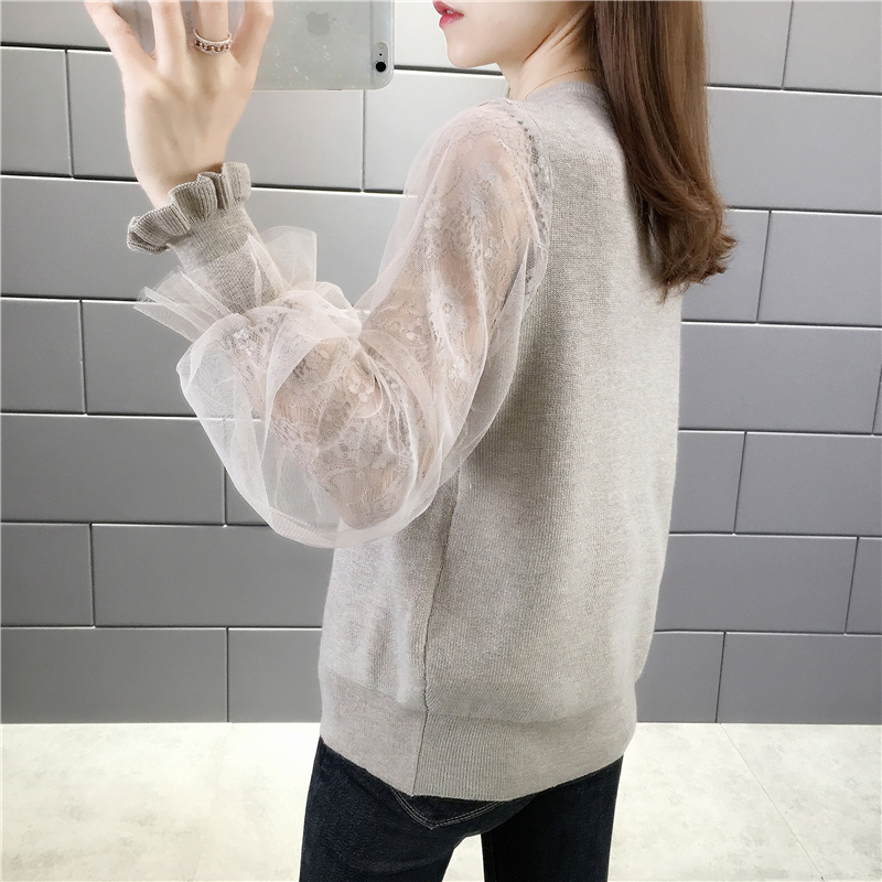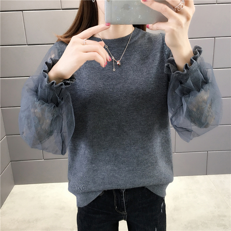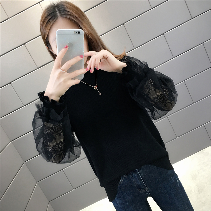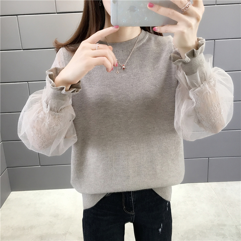 2021 весна и осень новая Корейская свободная кружевная вязаная Базовая рубашка с рукавами-фонариками, сетчатый студенческий свитер в стиле ретро, женская одежда
