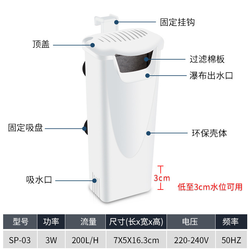 Фильтр для резервуара черепахи Фильтр для резервуара для черепахи Низкий уровень воды Фильтр для аквариума Водопад Небольшой бесшумный встроенный очиститель воды