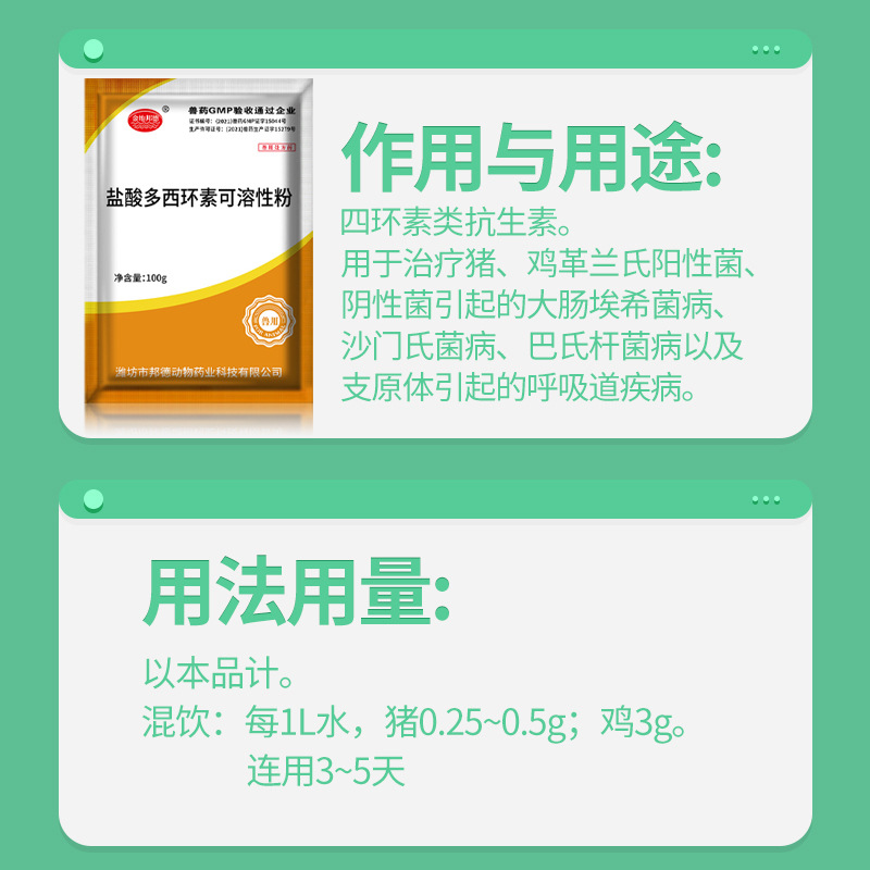 Ветеринарный препарат доксициклин гидрохлорид растворимый порошок 10% ветеринарный доксициклин свинья курица медицина Крупный рогатый скот овца утка гусь домашний скот и птица
